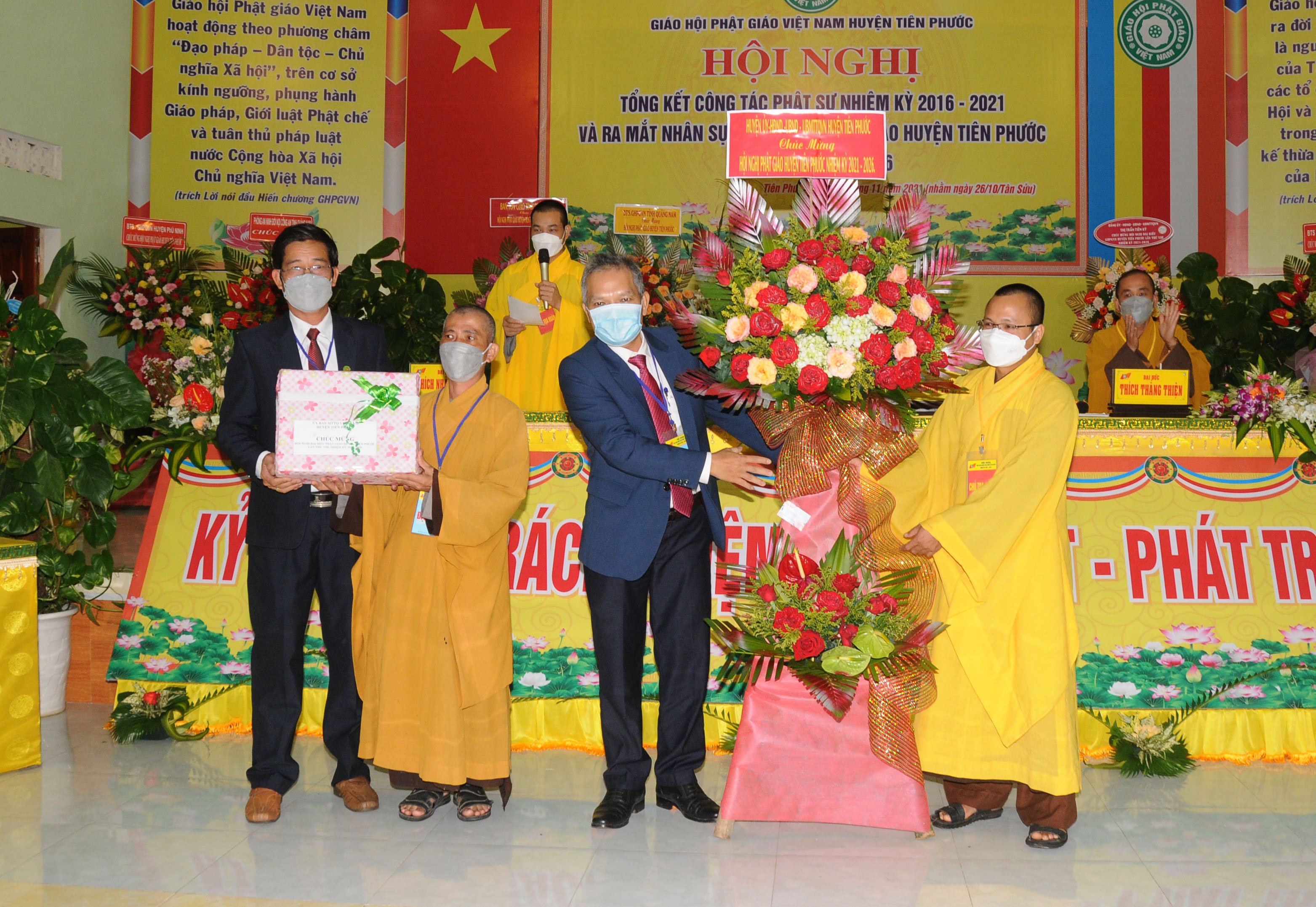 Nhiệm kỳ qua, chư tăng ni, phật tử các chùa trên địa bàn huyện Tiên Phước đã hoàn thành tốt công tác phật sự, chấp hành nghiêm đường lối chủ trương, chính sách pháp luật của Đảng và Nhà nước; hướng dẫn đạo hữu tu tập, chung tay thực hiện tốt công tác an sinh xã hội, từ thiện với tổng trị giá hơn 01 tỷ đồng. Công tác trùng tu, xây dựng, đúc tượng, đúc đại hồng chung có tổng kinh phí hơn 10 tỷ đồng. Đặc biệt, trước diễn biến phức tạp của tình hình dịch bệnh covid - 19, hưởng ứng lễ phát động quyên góp ủng hộ quỹ phòng chống dịch Covich -19 do Ủy ban MTTQ Việt Nam tỉnh tổ chức, các tôn giáo trên địa bàn huyện tích cực tham gia ủng hộ với số tiền trên 50 triệu đồng; thăm hỏi, động viên các điểm chốt chặn, các khu cách ly tập trung của huyện, xã, các hộ gia đình khó khăn bị ảnh hưởng covid -19 trên địa bàn huyện với hàng trăm suất quà trị giá gần 100 triệu đồng cùng hàng ngàn suất quà trao tặng cho bà con bị thiệt hại, ảnh hưởng do bão lụt gây ra...Đồng thời, tại hội nghị cũng đã đề ra nhiều chương tình hoạt động cho nhiệm kỳ mới được tập trung: Đẩy mạnh sinh hoạt các ngành quan trọng như: Tăng sự, Hoằng Pháp, hướng dẫn phật tử, văn hóa, từ thiện xã hội và thông tin truyền thông…