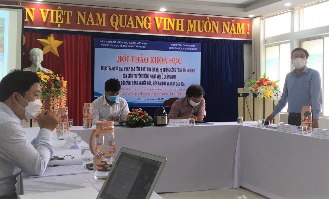Đây là đề tài khoa học cấp tỉnh do TS. Lê Xuân Thông - Viện khoa học xã hội vùng Trung bộ làm chủ nhiệm. Trong thời gian qua, nhóm nghiên cứu đã có nhiều cuộc điền giã, khảo sát tại các địa phương trong tỉnh về thực trạng các di tích, công trình tín ngưỡng, tôn giáo. Qua thống kê đến cuối năm 2019, cả tỉnh có 650 cơ sở tín ngưỡng và 404 cơ sở tôn giáo. Trong đó, có 88 cơ sở tín ngưỡng, tôn giáo đã được xếp hạng di tích cấp tỉnh; 20 cơ sở tín ngưỡng tôn giáo xếp hạng di tích cấp quốc gia (06 đình, 01 hội quán, 02 miếu, 02 lăng, 01 nhà thờ tộc, 01 nhà thờ tiền hiền, 08 cơ sở tôn giáo). Hệ thống công trình tín ngưỡng tôn giáo đã phản ánh đặc điểm đời sống tâm linh của cộng đồng dân cư xứ Quảng Nam.
