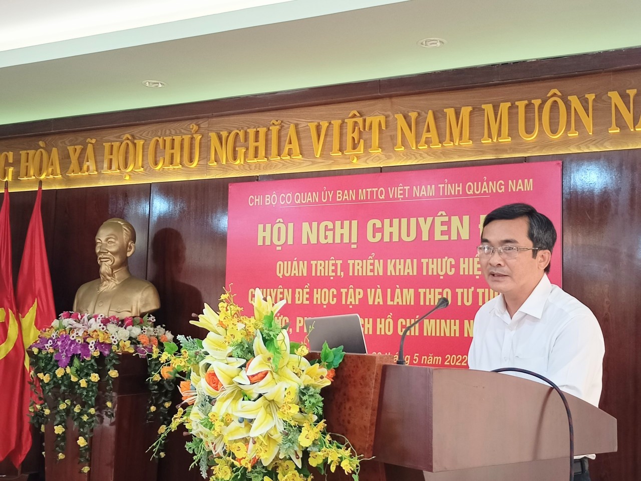 Năm 2022, chi bộ cơ quan Ủy ban MTTQ Việt Nam tỉnh xác định việc học tập và làm theo tư tưởng, đạo đức, phong cách Hồ Chí Minh gắn với tự phê bình và phê bình theo tinh thần Nghị quyết Trung ương 4 khóa XI, khoá XII và Kết luận số 21-KL/TW, ngày 21/5/2021 của Ban Chấp hành Trung ương Đảng khoá XIII về đẩy mạnh xây dựng, chỉnh đốn Đảng và hệ thống chính trị; kiên quyết ngăn chặn, đẩy lùi, xử lý nghiêm cán bộ, đảng viên suy thoái về tư tưởng chính trị, đạo đức, lối sống, biểu hiện “tự diễn biến”, “tự chuyển hoá” là nhiệm vụ chính trị trọng tâm góp phần xây dựng Chi bộ trong sạch, vững mạnh; lãnh đạo, chỉ đạo cán bộ, đảng viên cơ quan thực hiện và hoàn thành xuất sắc nhiệm vụ được giao./.