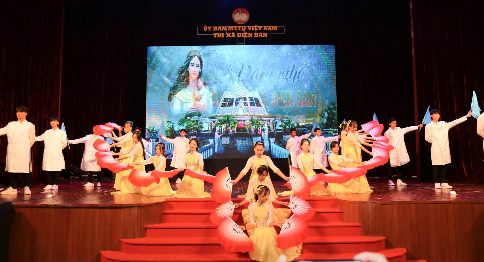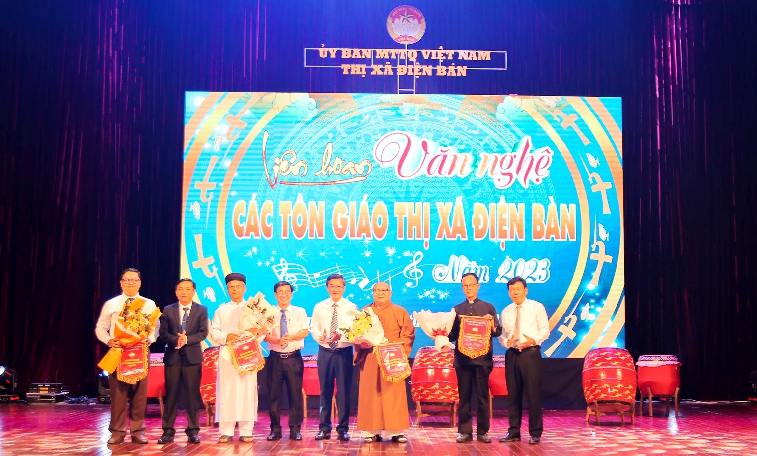 Tại chương trình Liên hoan văn nghệ, Ban Thường trực Ủy ban MTTQ Việt Nam thị xã đã trao 02 ngôi nhà đại đoàn kết cho 02 hộ gia đình có hoàn cảnh đặc biệt khó khăn của xã Điện Tiến và hộ cận nghèo của phường Điện Thắng Bắc, mỗi ngôi nhà trị giá 50 triệu đồng. Ngoài ra, các tổ chức tôn giáo trên địa bàn thị xã cùng với Ban Thường trực Ủy ban MTTQ Việt Nam thị xã đã trao 20 suất quà cho 20 hộ gia đình có hoàn cảnh khó khăn, hộ nghèo, cận nghèo với mỗi hộ 01 triệu đồng và 01 suất quà trị giá 300.000 đồng. Cũng tại Chương trình này, các tổ chức, các tôn giáo đã ủng hộ số tiền 13.200.000 đồng cho Quỹ “Vì người nghèo” thị xã.
