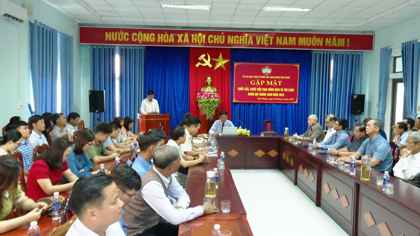 Đến dự buổi gặp mặt có ông Dương Đức Lin - Ủy viên Ban Thường vụ, Phó chủ tịch UBND huyện, đại diện lãnh đạo Công an, Phòng nội vụ, các tổ chức thành viên Uỷ ban MTTQ Việt Nam huyện cùng các vị Linh mục, Mục sư, Ban Thường vụ Hội đồng giáo xứ Tiên Phước, Ban Trị sự, Ban chấp sự các Hội thánh Tin Lành trên địa bàn huyện.