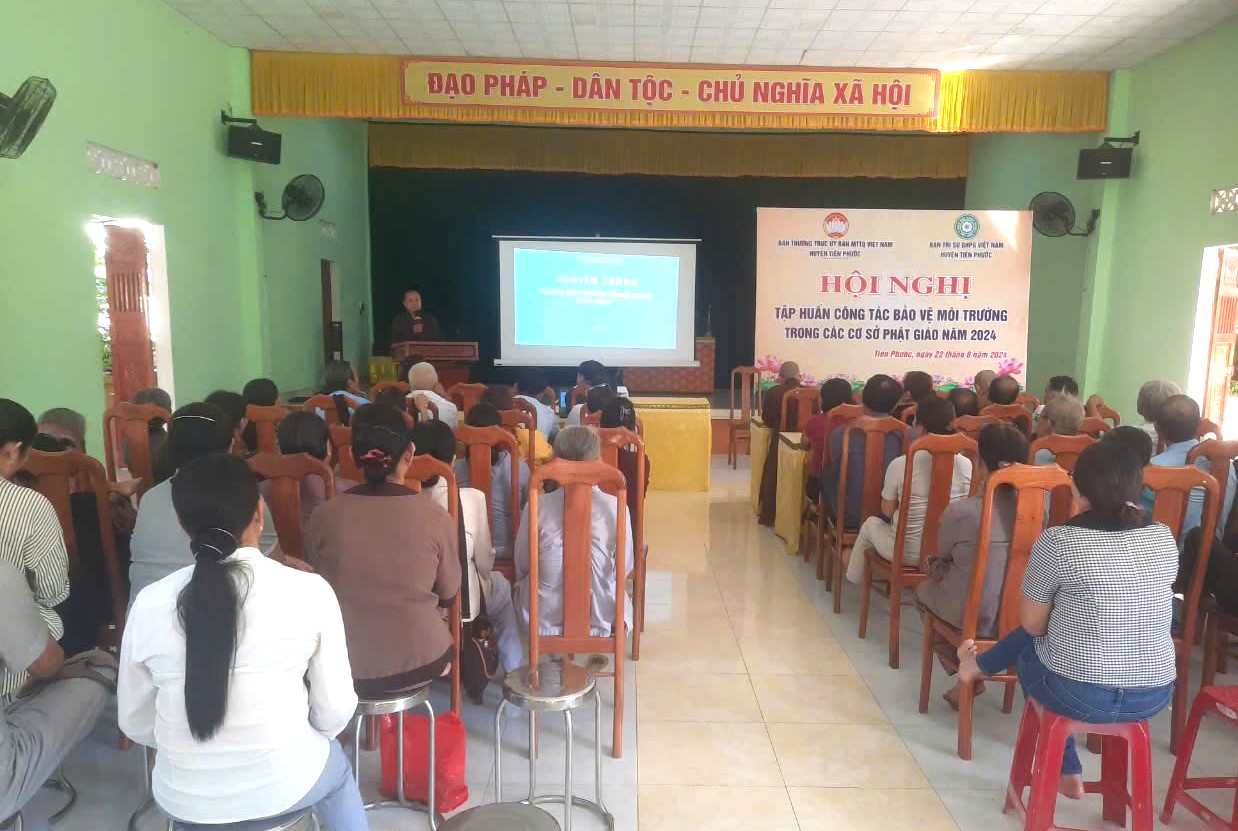 Dự Hội nghị tập huấn có ông Nguyễn Thái Hòa - Phó trưởng phòng Tài nguyên và Môi trường huyện, Đại đức Thích Nhật Thanh - Ủy viên Ban trị sự Giáo hội phật giáo Việt Nam tỉnh, Trưởng Ban trị sự và các vị trong Ban trị sự GHPG Việt Nam huyện; Ban hộ tự các chùa trên địa bàn huyện cùng đại diện các hộ đạo hữu, phật tử của chùa Tiên Kỳ, chùa Hữu Lâm với gần 100 người dự.