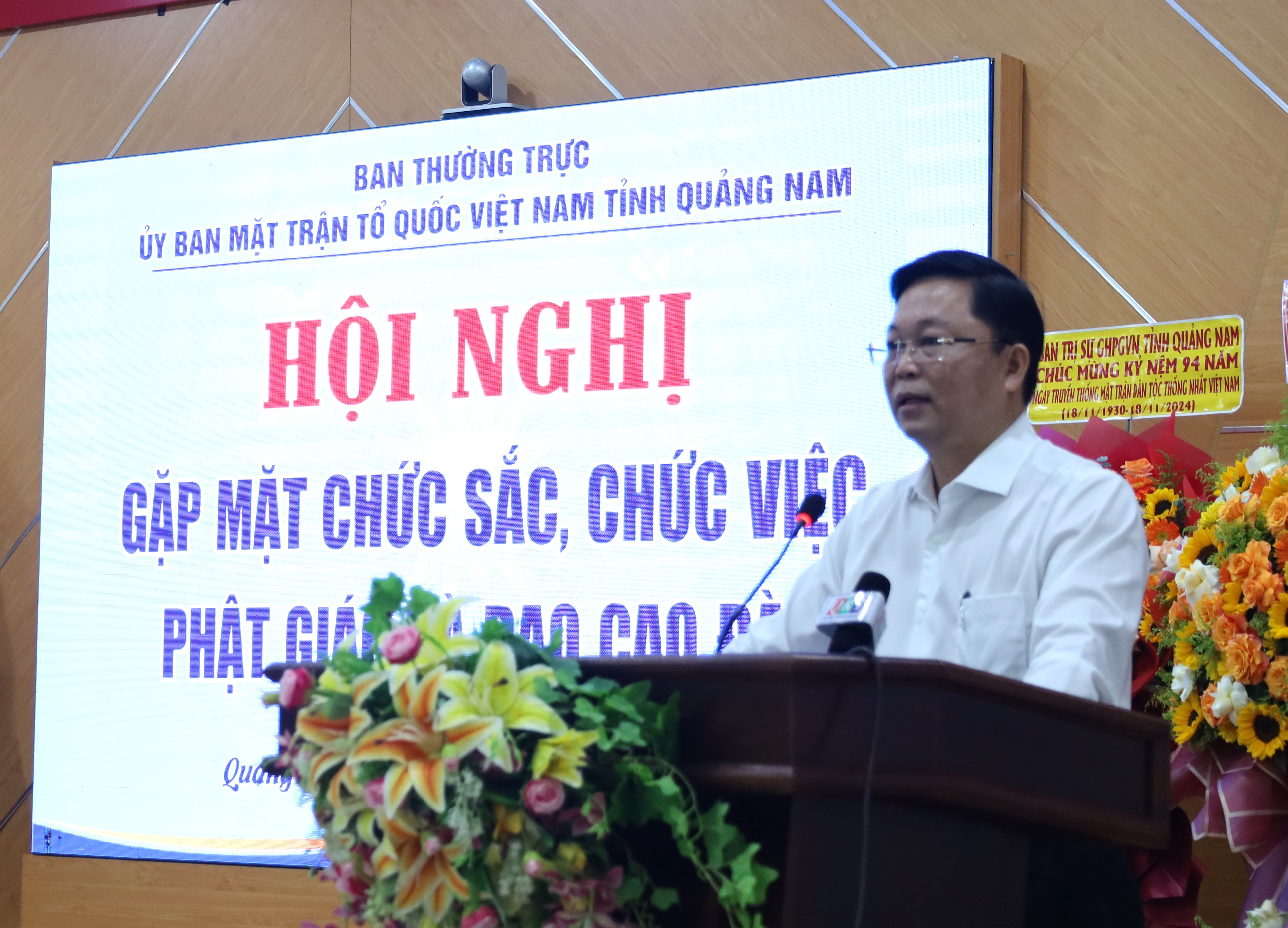 Tại Hội nghị, Phó Chủ tịch UBND tỉnh Trần Nam Hưng thông tin tình hình phát triển KT- XH của tỉnh 10 tháng của năm 2024 đến các vị chức sắc, chức việc. Trong đó nhấn mạnh, năm 2024, tình hình kinh tế - xã hội của tỉnh Quảng Nam đã có nhiều khởi sắc, có nhiều tín hiệu phục hồi tích cực, tạo đà cho sự phát triển mạnh mẽ của tỉnh nhà trong những năm tới. Trong 10 tháng đầu năm, chỉ số sản xuất toàn ngành công nghiệp (IPP) tăng 17,5% so với cùng kỳ năm 2023; Hoạt động sản xuất nông nghiệp diễn ra khá thuận lợi với tổng sản lượng lúa cả năm 2024 đến nay đạt trên 485 nghìn tấn, tăng 19,8 nghìn tấn (+4,3%) so với năm 2023. Chỉ số giá tiêu dùng (CPI) so với cùng kỳ năm trước tăng 1,85% và tăng 4,27% so với bình quân cùng kỳ. Tổng thu ngân sách nhà nước trên địa bàn tỉnh 10 tháng đạt 16,1 nghìn tỷ đồng, đạt 68% dự toán HĐND tỉnh giao (23,6 nghìn tỷ đồng) và bằng 104% so cùng kỳ năm trước, trong đó, thu nội địa 12,5 nghìn tỷ đồng, đạt 62% và thu xuất nhập khẩu 3,6 nghìn tỷ đồng, bằng 102%. Tổng kim ngạch hàng hoá xuất nhập khẩu 10 tháng đầu năm đạt 4.361,68 triệu USD, tăng 18,27% so với cùng kỳ.Bên cạnh đó, tình hình tôn giáo trên địa bàn tỉnh cơ bản ổn định, các hoạt động tôn giáo tuân thủ pháp luật, theo Hiến chương, điều lệ, tôn chỉ, mục đích của tôn giáo và thực hiện theo đúng phương châm hành đạo gắn bó, đồng hành cùng dân tộc, chung tay cùng các chính quyền, Mặt trận và cùng toàn xã hội tích cực hưởng ứng các phong trào thi đua yêu nước các cuộc vận động, các chương trình phát triển kinh tế - xã hội, giữ vững an ninh, trật tự tại địa phương… Mối quan hệ giữa chức sắc, chức việc, tín đồ các tôn giáo với các cấp chính quyền, với Mặt trận và các ban, ngành, tổ chức chính trị - xã hội ngày càng gần gũi, gắn bó mật thiết, chặt chẽ hơn; khối đại đoàn kết toàn dân ngày càng được củng cố, tăng cường.