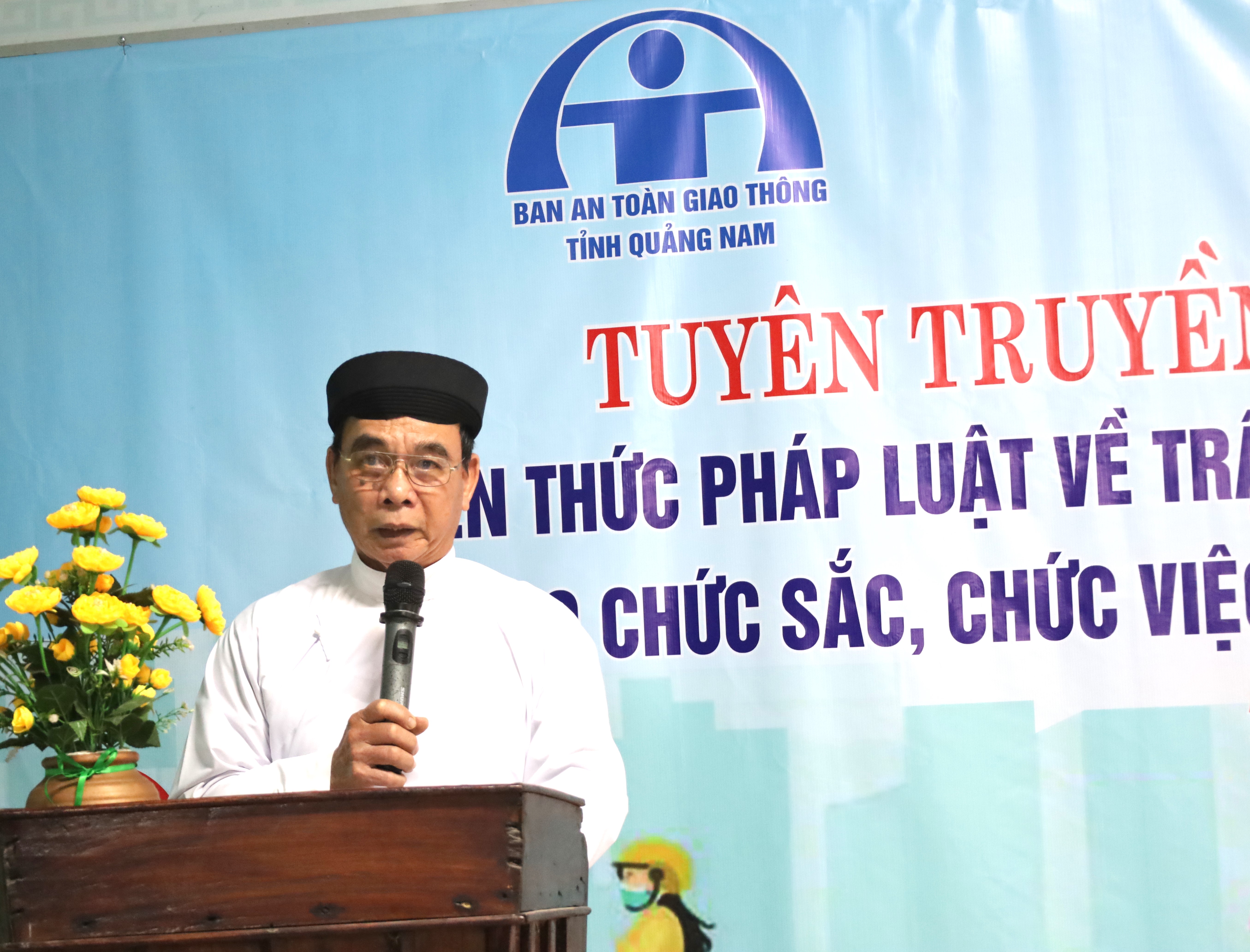 Tham dự Hội nghị có ông Nguyễn Văn Mau - Phó Chủ tịch Uỷ ban MTTQ Việt Nam tỉnh, ông Phan Đức Tiễn - Chánh Văn phòng Ban An toan giao thông tỉnh, Giáo hữu Lê Đức Thuần- Trưởng ban Đại diện Hội thánh Truyền giáo Cao Đài tại Quảng Nam.
