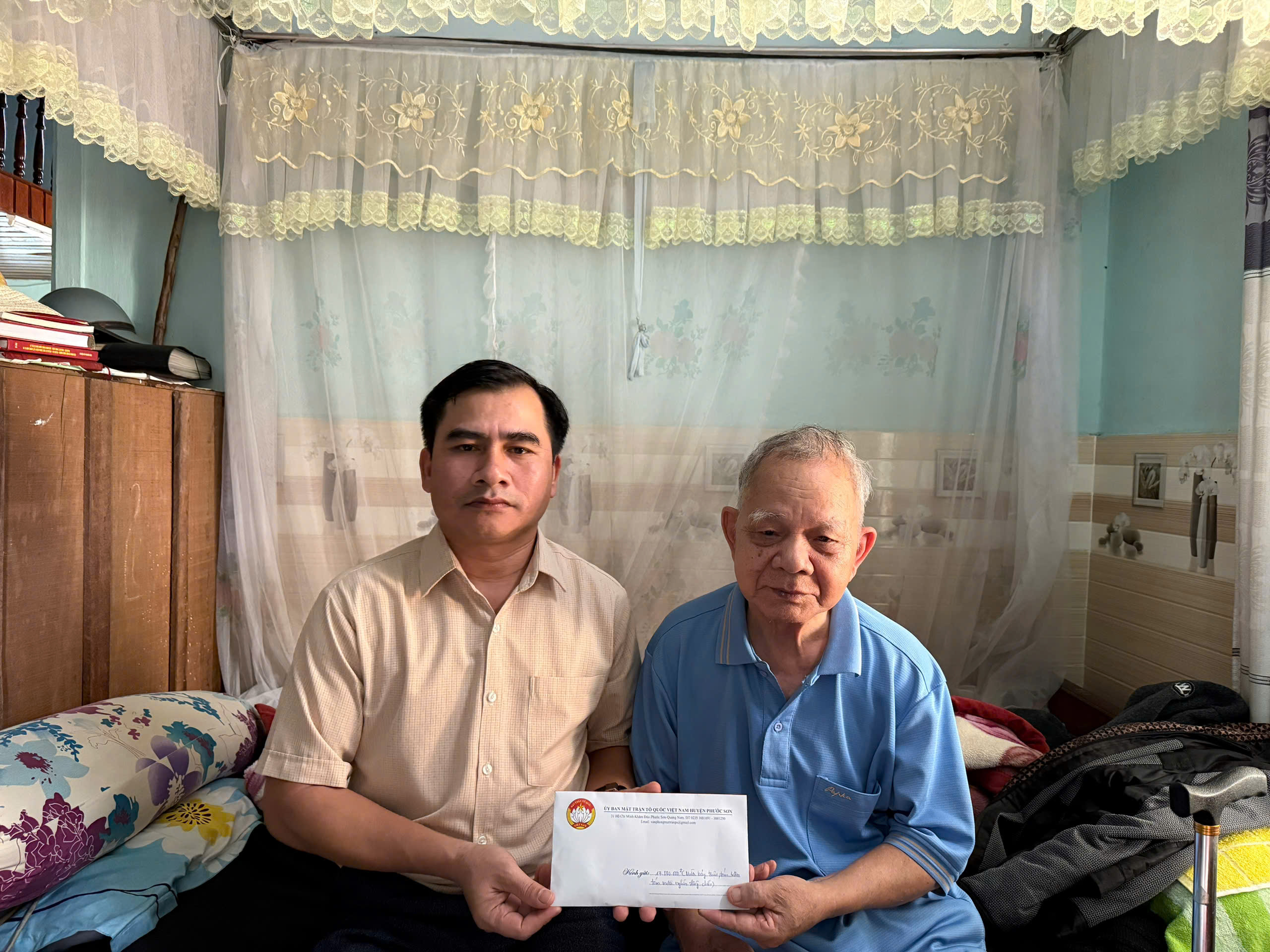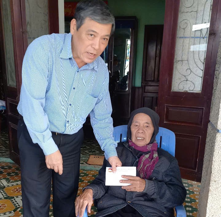 thăm hỏi và trao tiền hỗ trợ cho ông Nguyễn Văn Pháo (Nam Giang)