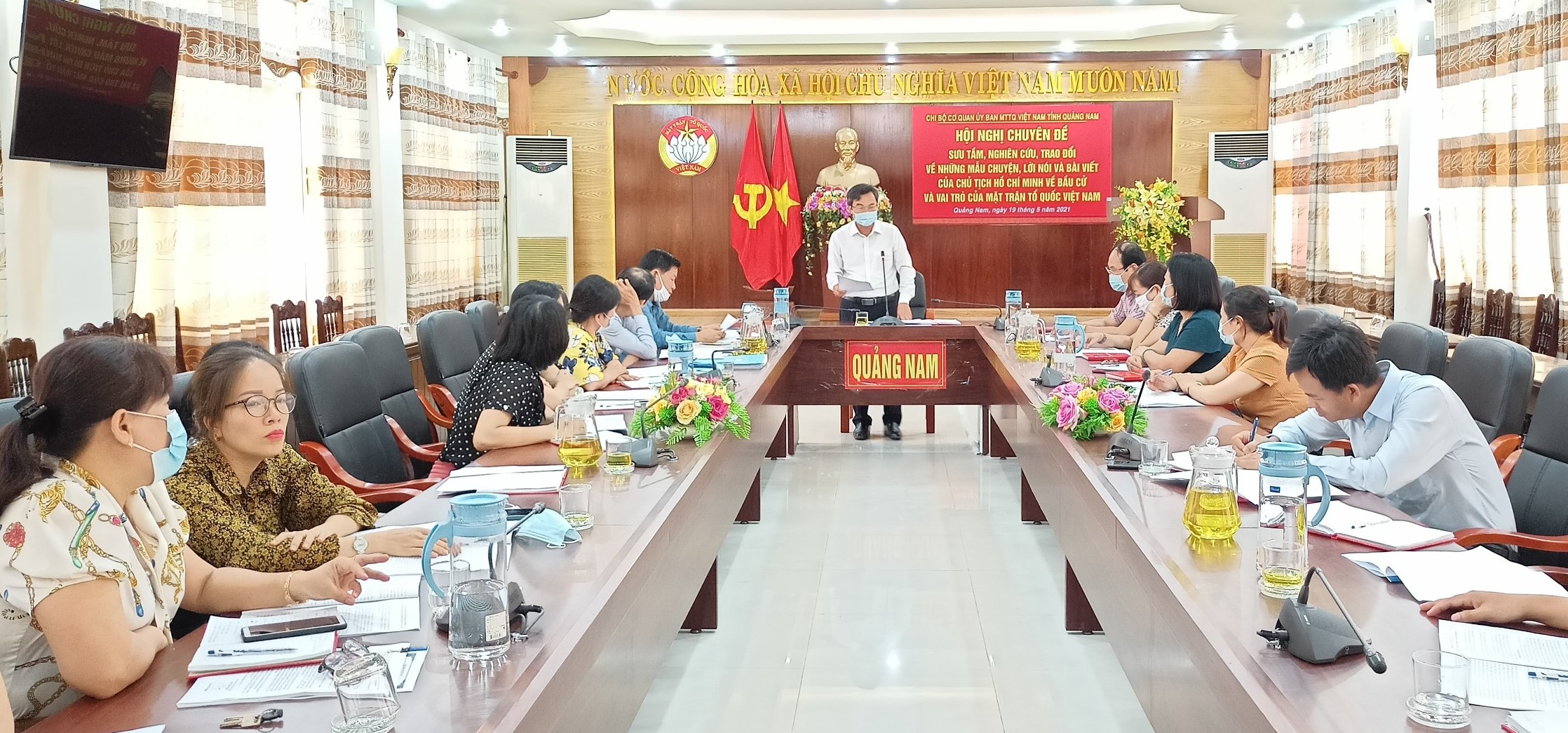 Chủ đề sinh hoạt chuyên đề Quý II/2021 được chi bộ cơ quan chọn là: Việc sưu tầm, nghiên cứu “Những mẩu chuyện, lời nói, bài viết của Chủ tịch Hồ Chí Minh về công tác bầu cử và vai trò của Mặt trận Tổ quốc Việt Nam” gắn liện với công tác tham gia cuộc bầu cử đại biểu Quốc hội khóa XV và đại biểu HĐND các cấp nhiệm kỳ 2021-2026 của cơ quan Ủy ban MTTQ Việt Nam tỉnh trong năm 2021. Đồng thời kỷ niệm 80 năm thành lập Mặt trận Việt Minh - một trong những hình thức tổ chức của Mặt trận Tổ quốc Việt Nam (19/5/1941-19/5/2021) có vai trò hết sức quan trọng trong thắng lợi của Cách mạng Tháng Tám năm 1945, khai sinh Nước Việt Nam Dân chủ cộng hòa; thực hiện thành công cuộc Tổng Tuyển cử Quốc hội đầu tiên 1946 và bảo vệ thành quả cách mạng đến năm 1951 (khi Mặt trận Liên Việt được thành lập).