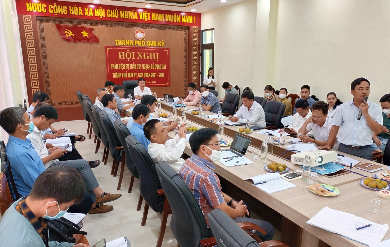Tại buổi phản biện, đại diện công ty TNHH MTV Quảng Tín đã báo cáo thuyết minh tổng hợp dự thảo quy hoạch sử dụng đất của thành phố Tam Kỳ, giai đoạn 2021 – 2030. Theo dự thảo, hiện trạng diện tích đất nông nghiệp của TP.TamKỳ năm 2020 là 5.252ha, diện tích quy hoạch đến năm 2030 là 3.933ha (giảm 1.318ha); trong đó, đất lúa giảm 362ha, đất trồng cây hàng năm giảm 370ha, đất trồng cây lâu năm giảm 455ha, đất rừng phòng hộ giảm 52ha, đất rừng sản xuất giảm 42ha, đất nuôi trồng thủy sản giảm 34ha.