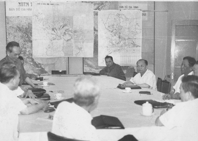 | Một cuộc họp của Bộ Chính trị tại Tổng Hành dinh Quân đội Nhân dân Việt Nam (Nhà D67) quyết định đặt tên Chiến dịch Sài Gòn - Gia Định là Chiến dịch Hồ Chí Minh_Nguồn: baovanhoa.vn |