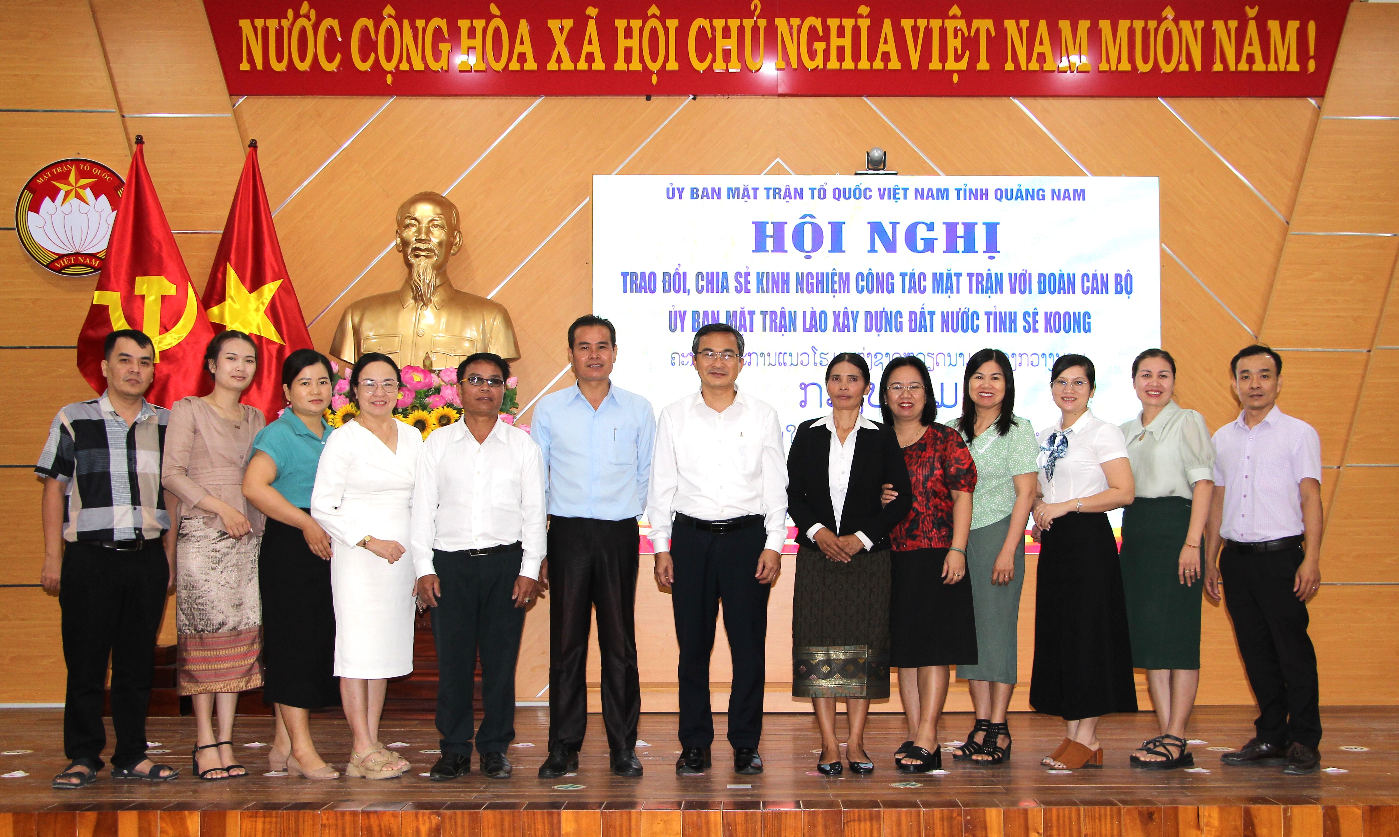 Cán bộ Ủy ban MTTQ Việt Nam tỉnh Quảng Nam và Ủy ban Mặt trận Lào xây dựng đất nước tỉnh Sê Koong chụp hình lưu niệm