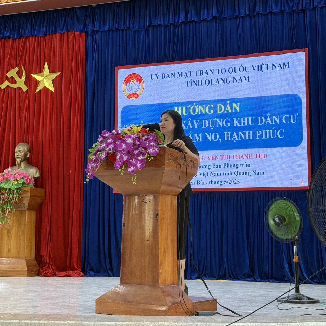Tại buổi phát động, bà Nguyễn Thị Thanh Thu - Ủy viên Thường trực, Trưởng ban Phong trào cơ quan Ủy ban MTTQ Việt Nam tỉnh đã báo cáo, hướng dẫn các nội dung trọng tâm liên quan đến việc xây dựng khu dân cư đoàn kết, ấm no, hạnh phúc. Nội dung tập trung vào vai trò của Mặt trận trong công tác tuyên truyền, vận động Nhân dân thực hiện tốt quy ước, hương ước cộng đồng; phát huy tinh thần tự chủ, tự quản của Nhân dân, phát triển kinh tế, giảm nghèo bền vững và xây dựng cảnh quan môi trường sáng - xanh - sạch - đẹp, …