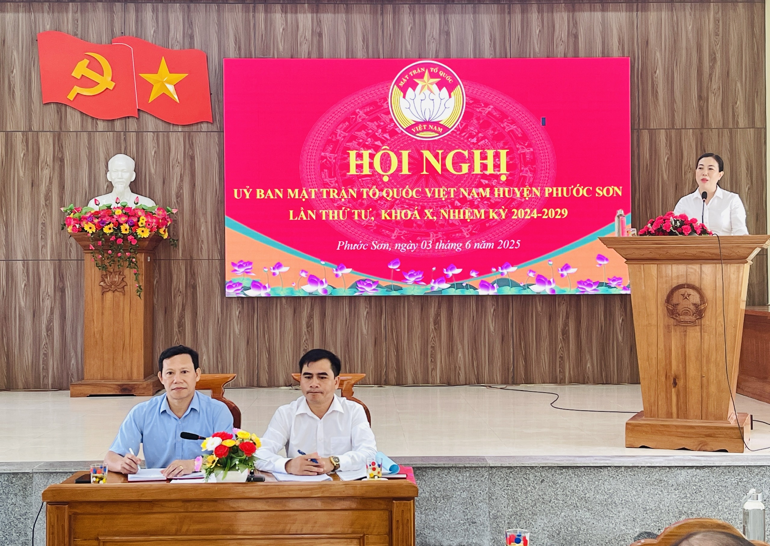 Ngày 03/6 vừa qua, Ủy ban MTTQ Việt Nam huyện Phước Sơn đã tổ chức Hội nghị lần thứ 4, khóa X, nhiệm kỳ 2024–2029 nhằm đánh giá kết quả công tác Mặt trận trong 6 tháng đầu năm 2025 và đề ra một số nhiệm vụ trọng tâm trong thời gian tới.
