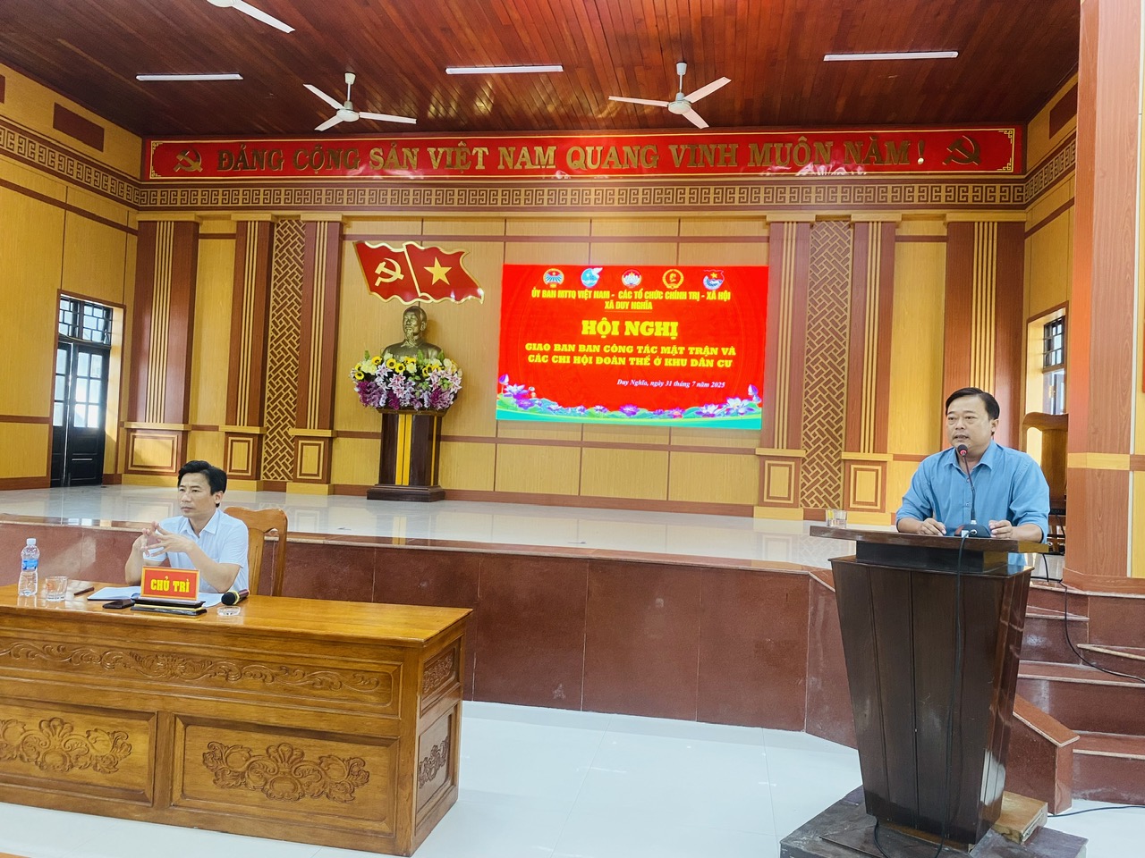 Phát biểu kết luận hội nghị, đồng chí Nguyễn Tiến Hùng – Ủy viên Ban Thường vụ Đảng ủy, Chủ tịch Ủy ban MTTQ Việt Nam xã ghi nhận, đánh giá cao tinh thần nghiêm túc, trách nhiệm của các đại biểu tham dự. Đồng chí đề nghị các Ban Công tác Mặt trận, chi hội đoàn thể tiếp tục bám sát định hướng Nghị quyết của Đảng, phát huy vai trò nòng cốt trong công tác tuyên truyền, vận động Nhân dân thực hiện thắng lợi các mục tiêu, nhiệm vụ chính trị của địa phương; đồng thời chuẩn bị chu đáo, tổ chức thành công Đại hội đại biểu MTTQ Việt Nam và các đoàn thể chính trị - xã hội nhiệm kỳ 2025 – 2030, góp phần củng cố khối đại đoàn kết toàn dân tộc, xây dựng xã Duy Nghĩa ngày càng phát triển toàn diện, bền vững.