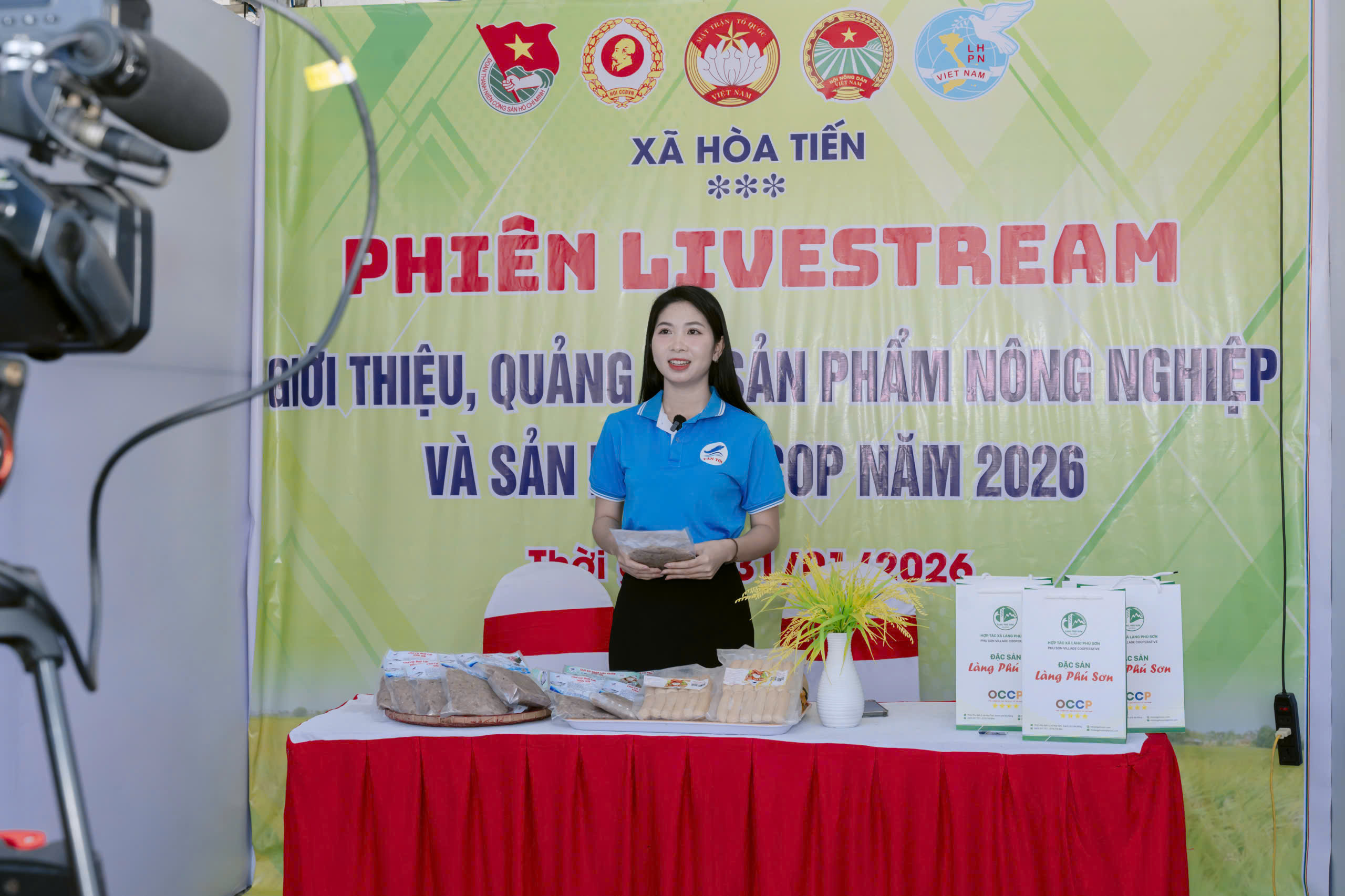 Ủy ban MTTQ Việt Nam xã Hòa Tiến phối hợp với các tổ chức chính trị – xã hội tổ chức phiên livestream giới thiệu và bán sản phẩm, thu hút hơn 1.200 lượt người theo dõi với 594 lượt tương tác. Phiên livestream có sự tham gia của 06 doanh nghiệp, hợp tác xã và hộ kinh doanh, trực tiếp giới thiệu các sản phẩm đặc trưng, thế mạnh của địa phương đến người tiêu dùng, góp phần mở rộng kênh tiêu thụ sản phẩm theo hướng ứng dụng công nghệ số.