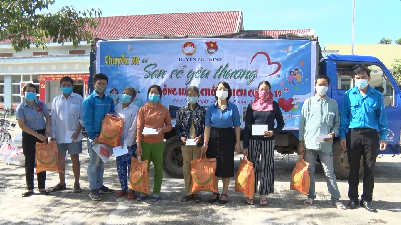 Ban Thường trực Ủy Ban MTTQ Việt Nam huyện Phú Ninh phối hợp với Đoàn Thanh niên tổ chức phát động Chương trình những Chuyến xe “San sẻ yêu thương đồng hành chống dịch Covid-19” tập trung hỗ trợ cho các nhóm đối tượng là hộ nghèo, cận nghèo, người già neo đơn, người có hoàn cảnh đặc biệt khó khăn, người khuyết tật, người dân là lao động tự do, mất việc; người đang bị bệnh hiểm nghèo,... Chuyến xe “San sẻ yêu thương đồng hành chống dịch Covid-19” đã đi qua 11 xã/ thị trấn trên địa bàn huyện để tặng 4.000kg gạo; đồ dùng sinh hoạt thiết yếu kèm theo tiền mặt với tổng kinh phí gần 40 triệu đồng. Đây chính là nguồn động viên để những người nghèo trên địa bàn huyện vượt qua khó khăn trong mùa dịch.