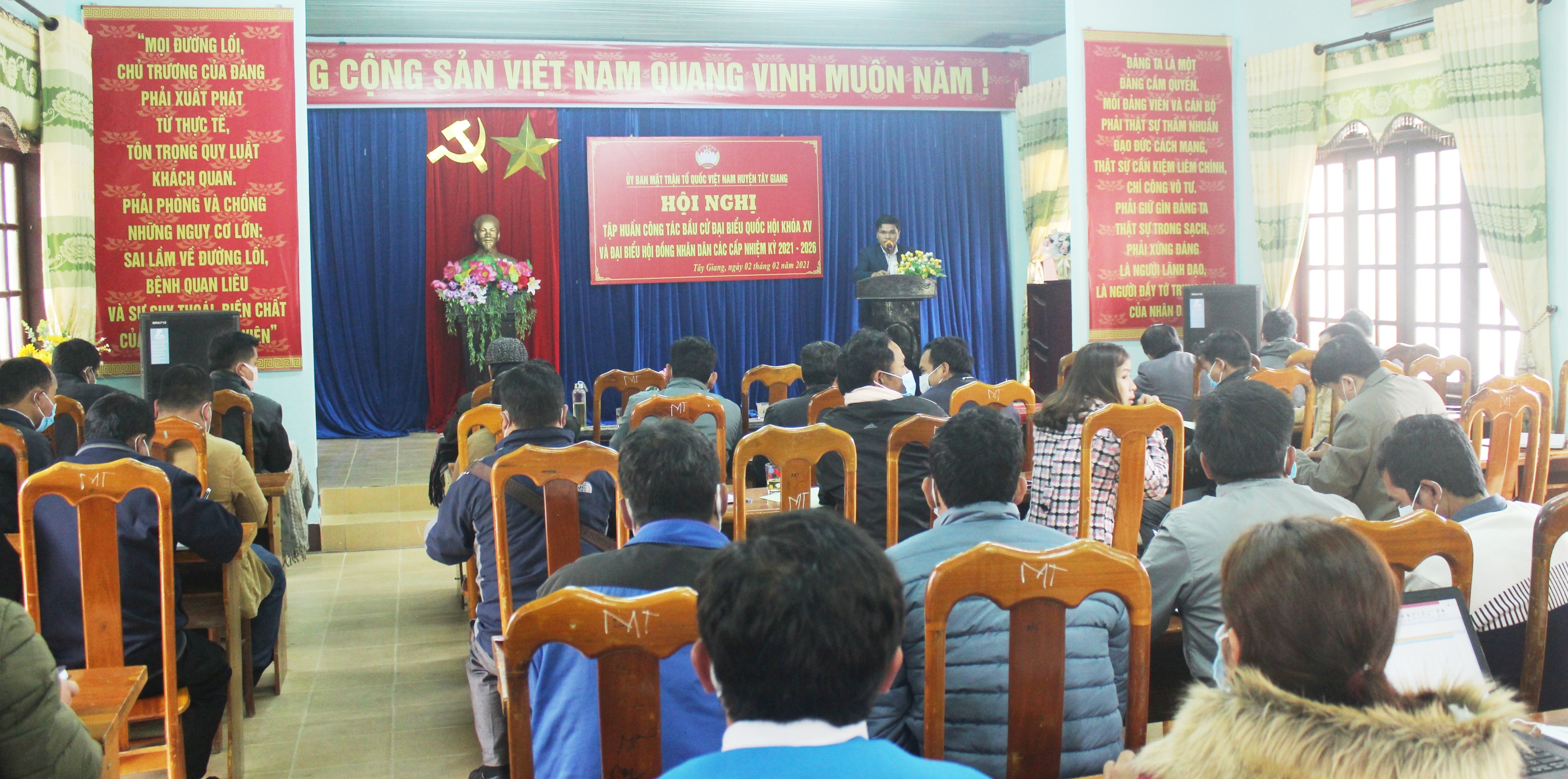 Huyện Tây Giang: Sáng ngày 02/02/2021, Ủy ban Mặt trận Tổ quốc Việt Nam huyện tổ chức hội nghị tập huấn công tác bầu cử đại biểu Quốc hội khóa XV và đại biểu Hội đồng nhân dân các cấp, nhiệm kỳ 2021-2026. Tham gia hội nghị tập huấn có đại diện lãnh đạo các tổ chức thành viên Mặt trận huyện, thành viên Ủy ban bầu cử các xã, Ban Thường trực Ủy ban Mặt trận Tổ quốc Việt Nam 10 xã trên địa bàn huyện.