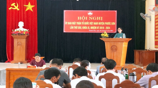 Chiều ngày 01/7/2021, Ủy ban MTTQ Việt Nam huyện Phước Sơn tổ chức hội nghị sơ kết công tác Mặt trận 6 tháng đầu năm, triển khai nhiệm vụ trọng tâm 6 tháng cuối năm 2021. Dự hội nghị có các đồng chí: Nguyễn Quảng, Phó Bí thư Thường trực Huyện ủy; Hồ Văn Phen - UVTV Huyện ủy, Phó Chủ tịch HĐND huyện; Hồ Công Điểm - Phó Chủ tịch UBND huyện; các đại biểu đại diện lãnh đạo các phòng, ban, ngành của huyện; các tổ chức thành viên, Ủy viên Ủy ban MTTQ Việt Nam huyện khóa IX; Chủ tịch, PCT Ủy ban MTTQ Việt Nam các xã, thị trấn. Đồng chí Nguyễn Thị Hồng - UVBTV Huyện ủy, Trưởng ban Dân vận, Chủ tịch Ủy ban MTTQ Việt Nam huyện chủ trì hội nghị.