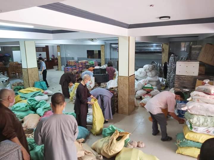 Chức sắc, chức việc, bà con phật tử tham gia đóng góp nhu yếu phẩm ủng hộ nhân dân Thành phố Hồ Chí Minh