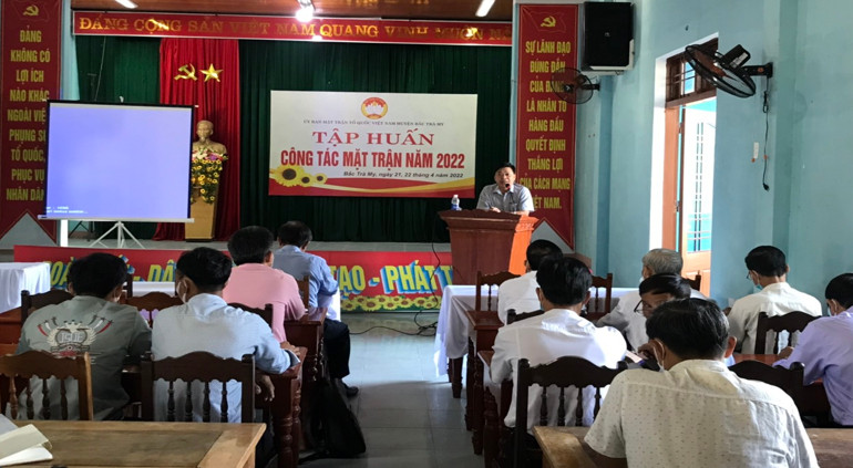 Sáng ngày 21/4/2022, Ban Thường trực Uỷ ban MTTQ Việt Nam huyện Bắc Trà My phối hợp với Ban Tuyên giáo Huyện uỷ khai mạc tập huấn, bồi dưỡng công tác Mặt trận năm 2022 cho 72 đại biểu là Chủ tịch, Phó Chủ tịch Uỷ ban MTTQ Việt Nam các xã, thị trấn và Trưởng Ban công tác Mặt trận thôn, tổ dân phố trên địa bàn huyện. Hội nghị tập huấn diễn ra 02 ngày (21 và 22/4/2022)