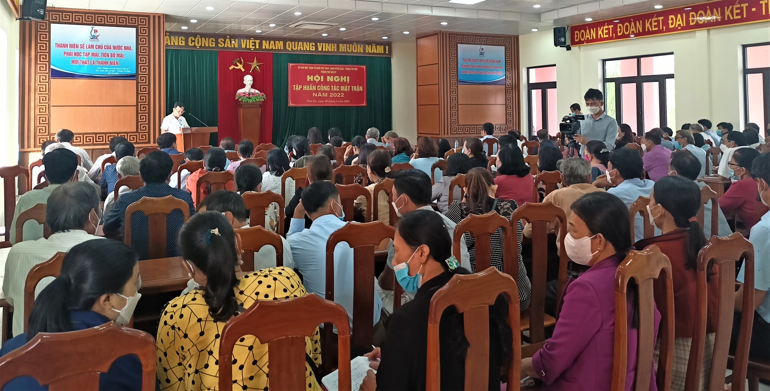* Tam Kỳ: Sáng ngày 19/4, Ban Thường trực Ủy ban MTTQ Việt Nam thành phố Tam Kỳ phối hợp với Phòng Tư pháp và Ban Tuyên giáo Thành ủy tổ chức tập huấn, bồi dưỡng công tác Mặt trận năm 2022 cho cán bộ chuyên trách Ủy ban MTTQ Việt Nam của 13 xã, phường và Trưởng Ban Công tác Mặt trận ở khu dân cư. Hội nghị diễn ra 02 ngày (19, 20/4/2022).