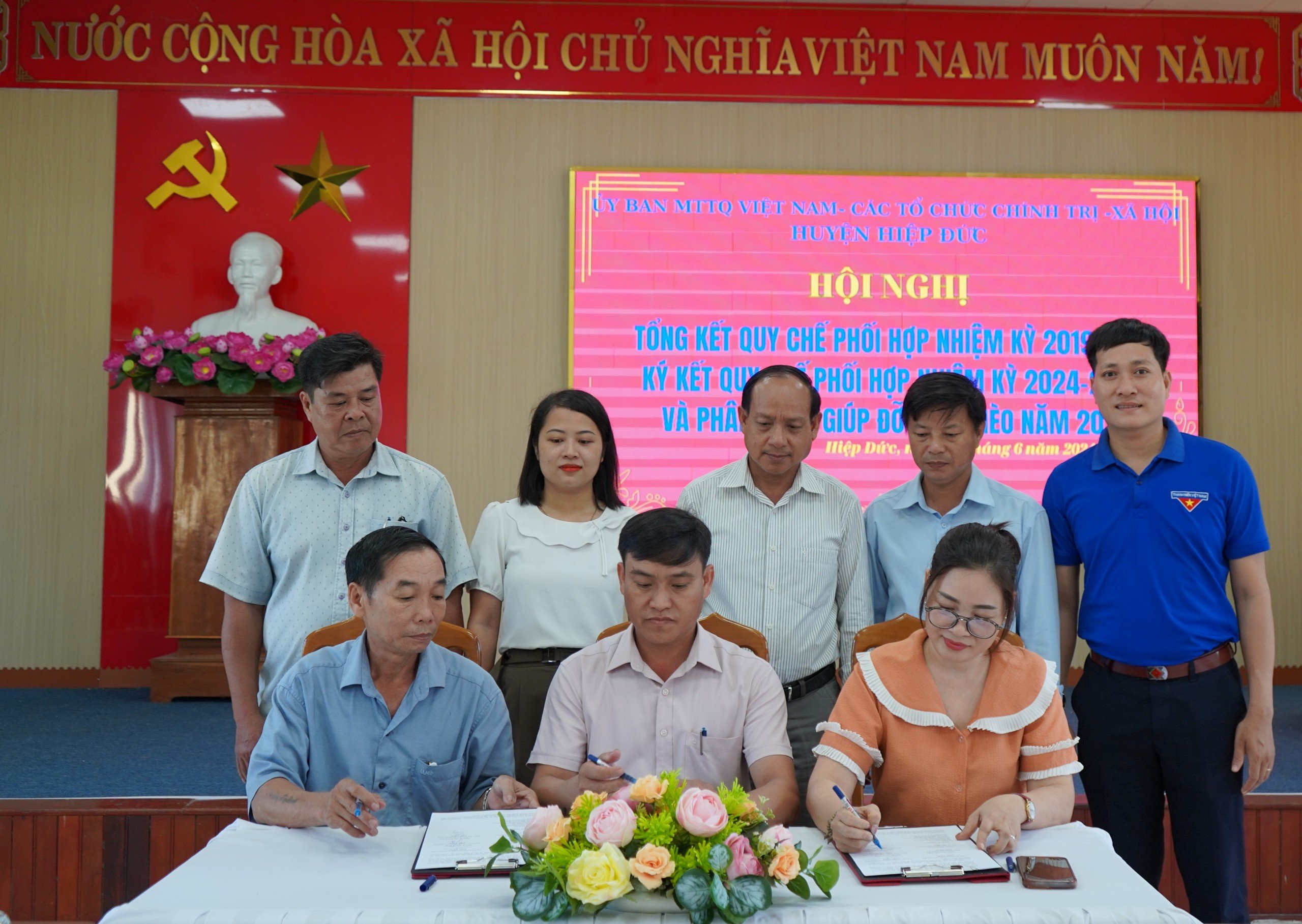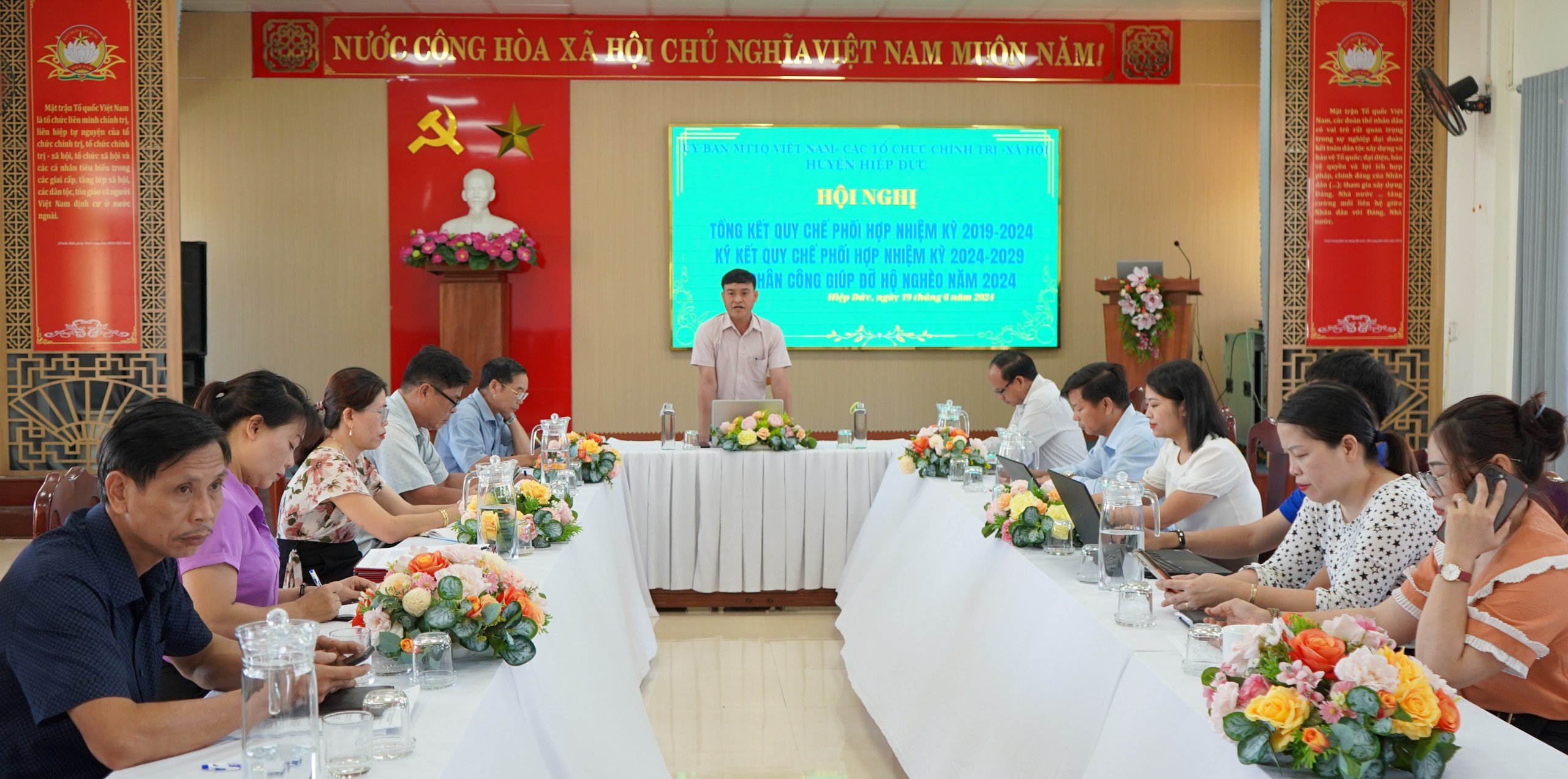 * Hiệp Đức: Tổng kết quy chế phối hợp công tác giữa MTTQ Việt Nam và các tổ chức chính trị - xã hội huyện nhiệm kỳ 2019-2024; ký kết quy chế phối hợp nhiệm kỳ 2024 - 2029 và phân công giúp đỡ hộ nghèo năm 2024