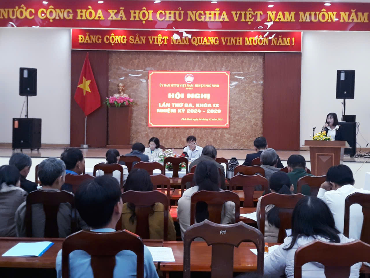 Phát biểu tại Hội nghị, bà Lê Thị Như Thủy, UVTT, Trưởng ban Tuyên giáo-Tổ chức-Dân tộc-Tôn giáo Ủy ban MTTQ Việt Nam tỉnh Quảng Nam; ông Lê Văn Ninh, Phó Bí thư Thường trực Huyện ủy Phú Ninh ghi nhận và đánh giá cao những kết quả đạt được trong thực hiện nhiệm vụ công tác Mặt trận năm 2024 của Ủy ban MTTQ Việt Nam huyện Phú Ninh. Đồng thời nhấn mạnh một số nhiệm vụ trọng tâm thực hiện trong năm 2025: Phối hợp thực hiện tốt công tác chăm lo cho người nghèo, người có hoàn cảnh đặc biệt khó khăn nhân dịp mừng Đảng, đón xuân Ất Tỵ 2025; chuẩn bị các điều kiện tổ chức thành công Hội trại toàn dân kỷ niệm 20 năm thành lập huyện Phú Ninh (2005-2025) và 50 năm ngày giải phóng quê hương (24/3/1975-24/3/2025); chú trọng việc duy trì, nhân rộng, nâng cao chất lượng hoạt động các mô hình đã tổ chức phát động, thực hiện và xây dựng mới các mô hình trong thực hiện cuộc vận động “Toàn dân đoàn kết xây dựng nông thôn mới, đô thị văn minh”, “Người Việt Nam ưu tiên dùng hàng Việt Nam”; xây dựng nông thôn mới kiểu mẫu, nâng cao; xây dựng khu dân cư tự quản, đoàn kết, ấm no, hạnh phúc. Nâng cao chất lượng công tác nắm tình hình dư luận xã hội, tập hợp, phản ánh đến các cấp ủy Đảng, chính quyền quan tâm giải quyết các nguyện vọng, quyền lợi chính đáng, hợp pháp của Nhân dân; tập trung thực hiện các nhiệm vụ đột phá trong năm 2025, nhất là công tác nâng cao chất lượng giám sát, phản biện xã hội, tham gia góp ý xây dựng Đảng, xây dựng chính quyền; hoàn thành xong công tác xóa nhà tạm, nhà dột nát theo Nghị quyết số 13/2023/NQ-HĐND ngày 22/9/2023 của HĐND tỉnh…