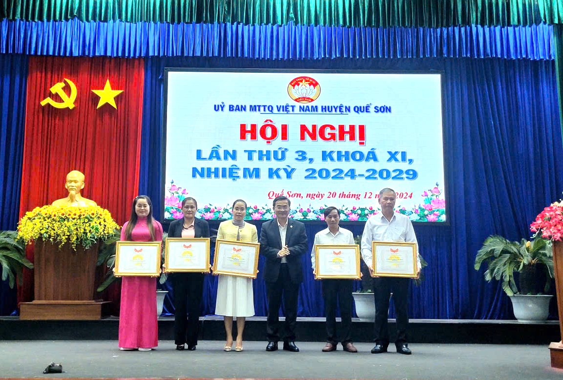 Về phía tỉnh, ông Nguyễn Phi Hùng - Phó Chủ tịch Thường trực Ủy ban MTTQ Việt Nam tỉnh đề nghị trong thời gian tới Ủy ban MTTQ Việt Nam từ huyện đến cơ sở trên địa bàn huyện Quế Sơn tiếp tục phát huy những kết quả đạt được khắc phục những hạn chế còn tồn tại; đổi mới hình thức hội nghị Ủy ban, tập trung trao đổi, thảo luận tại hội nghị; đổi mới trong thực hiện Cuộc vận động “Người Việt Nam ưu tiên dùng hàng Việt Nam”; triển khai thực hiện tốt 5 nội dung cuộc vận động “Toàn dân đoàn kết xây dựng nông thôn mới, đô thị văn minh”, xây dựng khu dân cư đoàn kết, ấm no, hạnh phúc; phong trào “Đoàn kết sáng tạo”; chú trọng đến công tác nắm bắt tình hình dư luận xã hội, ý kiến nguyện vọng của Nhân dân; đẩy mạnh tuyên truyền phối hợp với các tổ chức thành viên; tập trung công tác giám sát cán bộ, đảng viên gắn với nhân sự Đại hội Đảng nhiệm kỳ 2025 - 2030; giám sát việc thực hiện hỗ trợ công tác xóa nhà tạm, nhà dột nát giai đoạn 2023 - 2025; thực hiện tốt công tác phản biện xã hội.