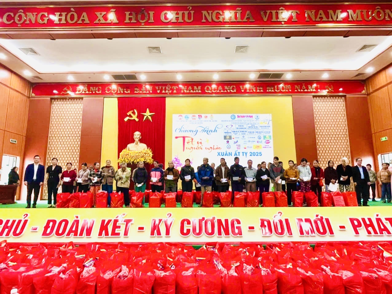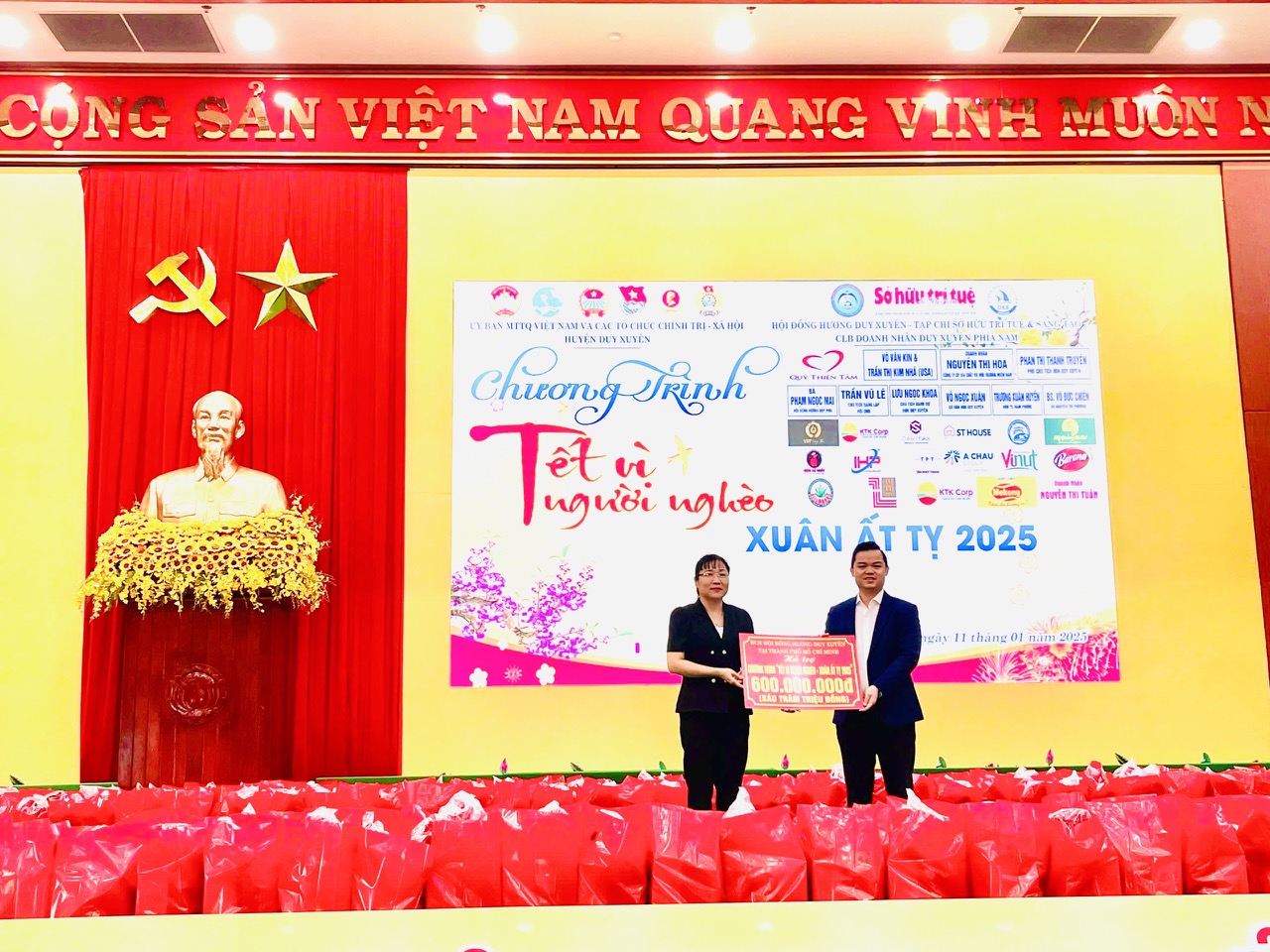 Sáng ngày 11/01/2025, Ủy ban MTTQ Việt Nam huyện Duy Xuyên phối hợp với Hội đồng hương Duy Xuyên tại thành phố Hồ Chí Minh tổ chức Chương trình “Tết vì người nghèo - Xuân Ất Tỵ” năm 2025. Tham dự Chương trình có ông Nguyễn Quang Mạnh - Phó Bí thư Thường trực Huyện ủy; ông Nguyễn Thanh Sơn - UVBTV Huyện ủy, Phó Chủ tịch HĐND huyện; ông Đặng Hữu Phúc - Huyện ủy viên, Phó Chủ tịch UBND huyện; bà Trần Thị Thanh Hương - Phó Chủ tịch Ủy ban MTTQ Việt Nam huyện; ông Đoàn Thiên Việt - Phó Chủ tịch Hội đồng hương Duy Xuyên tại thành phố Hồ Chí Minh, Chủ tịch Câu lạc bộ doanh nhân Duy Xuyên phía Nam; đại diện lãnh đạo các ban, ngành liên quan, các tổ chức thành viên của Ủy ban MTTQ Việt Nam huyện; đại diện các doanh nghiệp, tổ chức, nhà hảo tâm ủng hộ chương trình Tết vì người nghèo - Xuân Ất Tỵ năm 2025 và 500 hộ nghèo, hộ cận nghèo, hộ có hoàn cảnh đặc biệt khó khăn và các gia đình có thanh niên đang làm nhiệm vụ ở các đảo và thanh niên trúng tuyển nghĩa vụ quân sự năm 2025 có hoàn cảnh khó khăn.