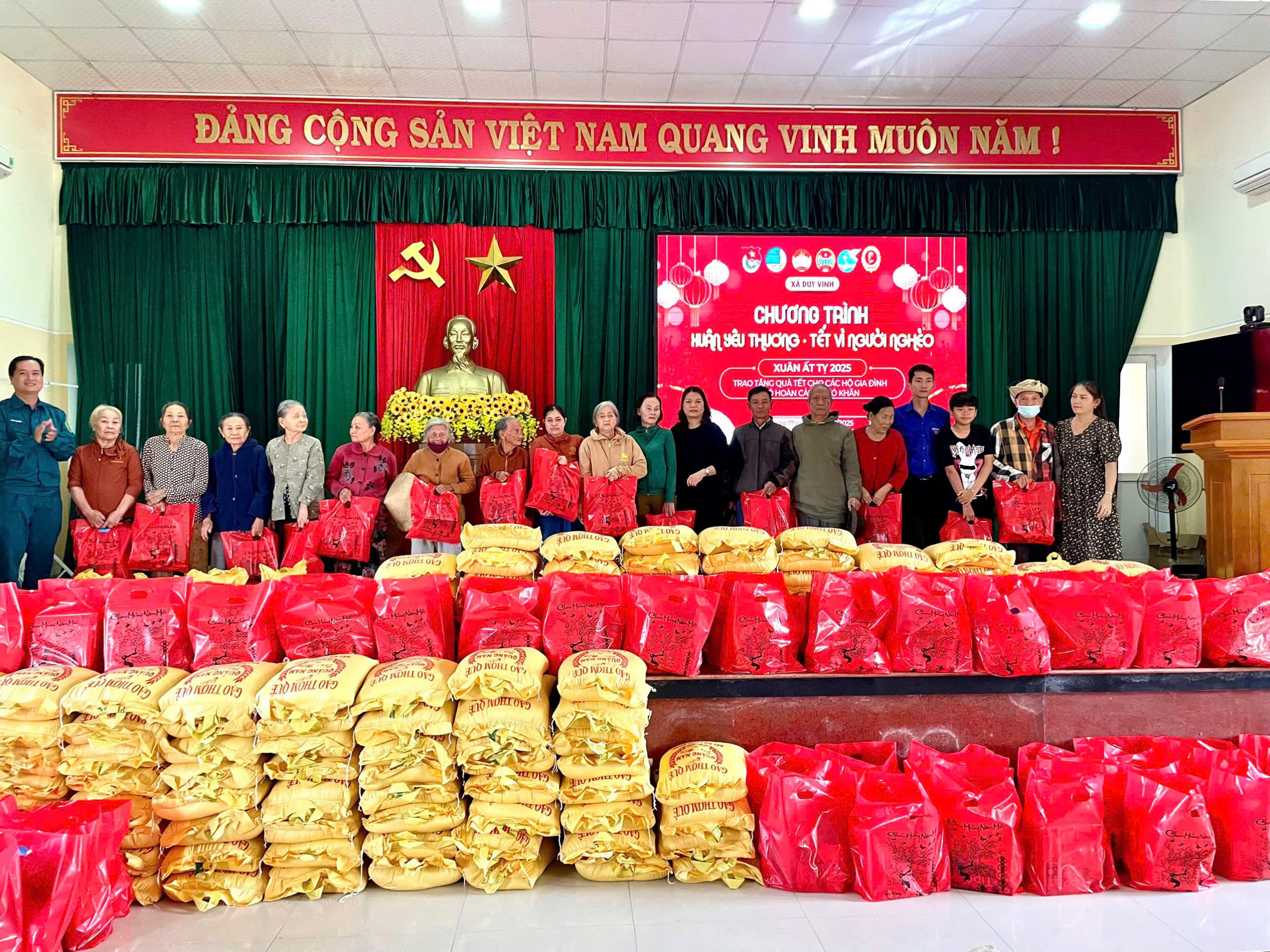 Ủy ban MTTQ Việt Nam huyện xuất Quỹ “Vì người nghèo”, vận động Hội đồng hương Duy Xuyên tại thành phố Hồ Chí Minh, Ngân hàng TMCP Cổ phần Đầu tư và Phát triển Việt Nam - Chi Nhánh Quảng Nam, Ngân hàng Nông nghiệp và Phát triển nông thôn Việt Nam - Chi nhánh Nam Phước và Chi nhánh Duy Xuyên, các nhà hảo tâm tổ chức các chương trình “Tết vì người nghèo - Xuân Ất Tỵ” năm 2025 tại huyện và các xã, thị trấn trao tặng 2.800 suất quà với tổng giá trị 2,2 tỷ đồng.