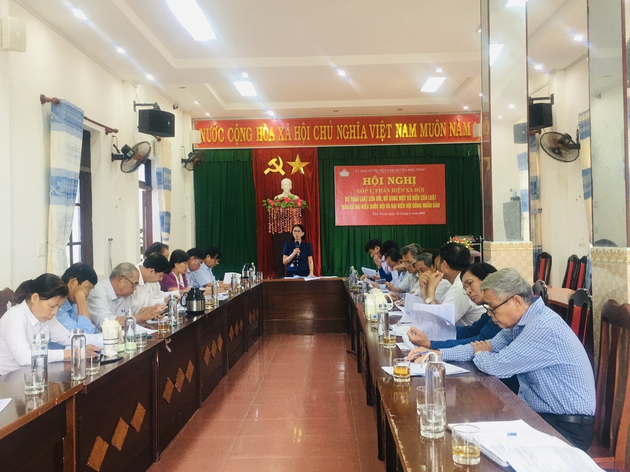 Sáng ngày 12/5/2025, Ban Thường trực Ủy ban MTTQ Việt Nam huyện Phú Ninh tổ chức hội nghị góp ý đối với dự thảo Luật sửa đổi, bổ sung một số điều của Luật Bầu cử đại biểu Quốc hội và đại biểu Hội đồng nhân dân. Chủ trì hội nghị là bà Nguyễn Thị Ngọc Vân – Ủy viên Ban Thường vụ Huyện ủy, Chủ tịch Ủy ban MTTQ Việt Nam huyện Phú Ninh. Tham dự hội nghị có Ban Thường trực Ủy ban MTTQ Việt Nam huyện, đại diện lãnh đạo các tổ chức thành viên Ủy ban MTTQ Việt Nam huyện và các thành viên Ban Tư vấn Ủy ban MTTQ Việt Nam huyện.