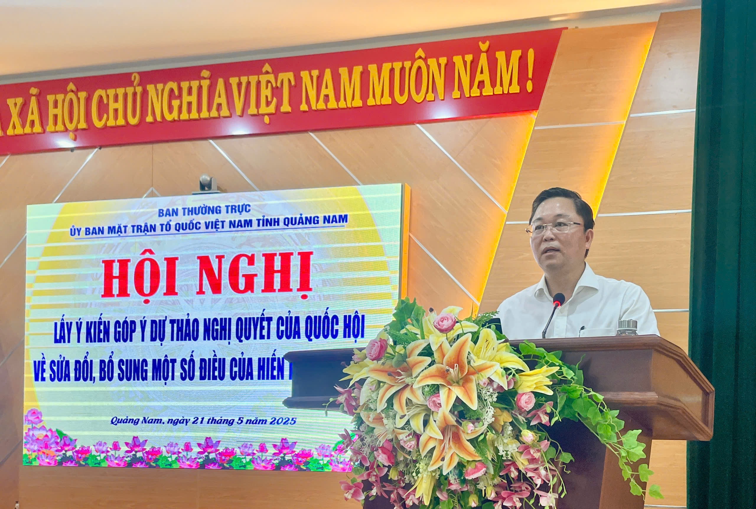 Sáng ngày 21/5/2025, Ban Thường trực Ủy ban MTTQ Việt Nam tỉnh Quảng Nam đã tổ chức Hội nghị lấy ý kiến góp ý dự thảo Nghị quyết của Quốc hội về sửa đổi, bổ sung một số điều của Hiến pháp năm 2013.