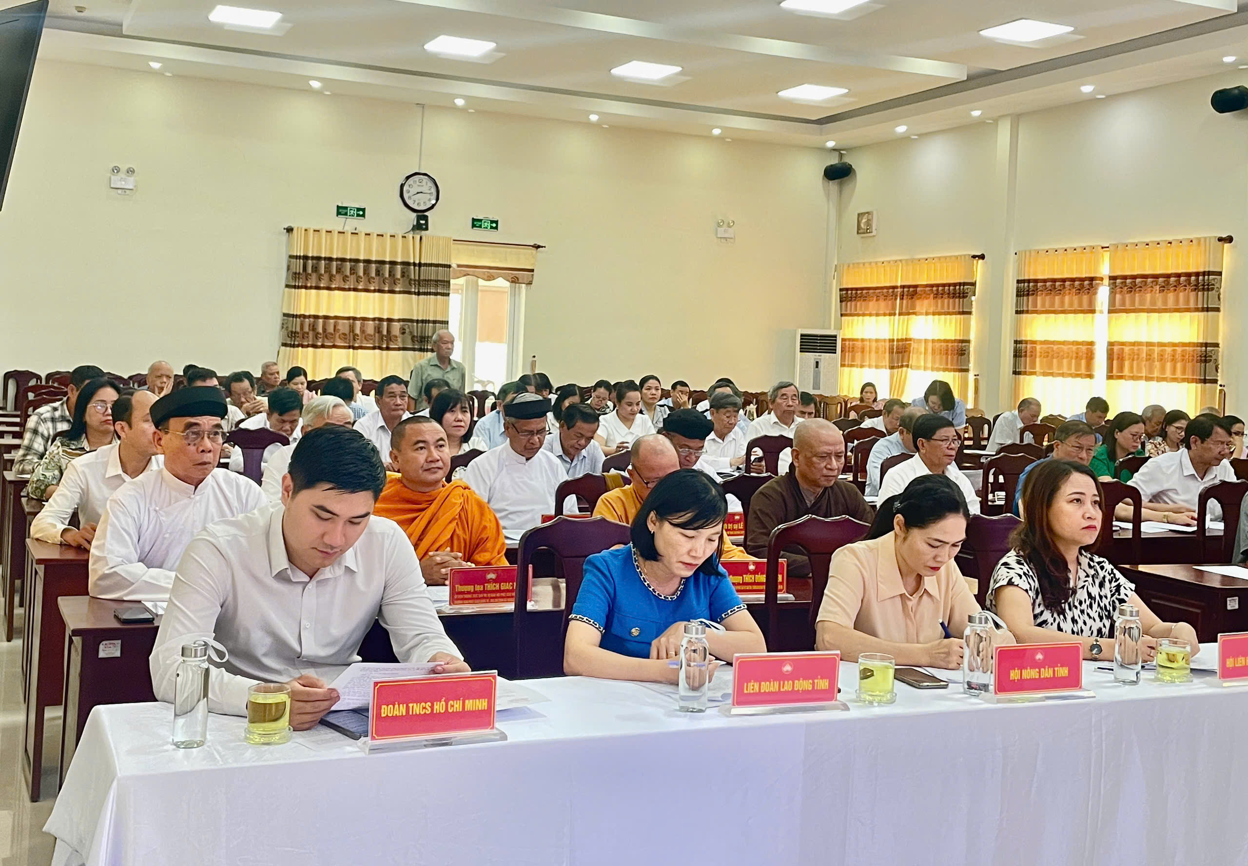 Hội nghị do ông Lê Trí Thanh – Ủy viên Ban Thường vụ Tỉnh ủy, Chủ tịch Ủy ban MTTQ Việt Nam tỉnh, ông Nguyễn Phi Hùng, Phó Chủ tịch Thường trực và ông Nguyễn Văn Mau – Phó Chủ tịch Ủy ban MTTQ Việt Nam tỉnh đồng chủ trì. Tham dự hội nghị có đại diện lãnh đạo các tổ chức chính trị - xã hội, Hội Luật gia, Đoàn Luật sư, Liên hiệp các hội Khoa học – Kỹ thuật tỉnh; các vị lãnh đạo nguyên Chủ tịch Ủy ban MTTQ Việt Nam và các tổ chức chính trị - xã hội tỉnh qua các thời kỳ; các vị Ủy viên Ủy ban MTTQ Việt Nam tỉnh nhiệm kỳ 2024–2029; Ban chủ nhiệm Hội đồng tư vấn về Dân chủ - Pháp luật của Ủy ban MTTQ Việt Nam tỉnh và các vị là Chủ tịch (Phó Chủ tịch) Ủy ban MTTQ các huyện, thị xã, thành phố trên địa bàn tỉnh.