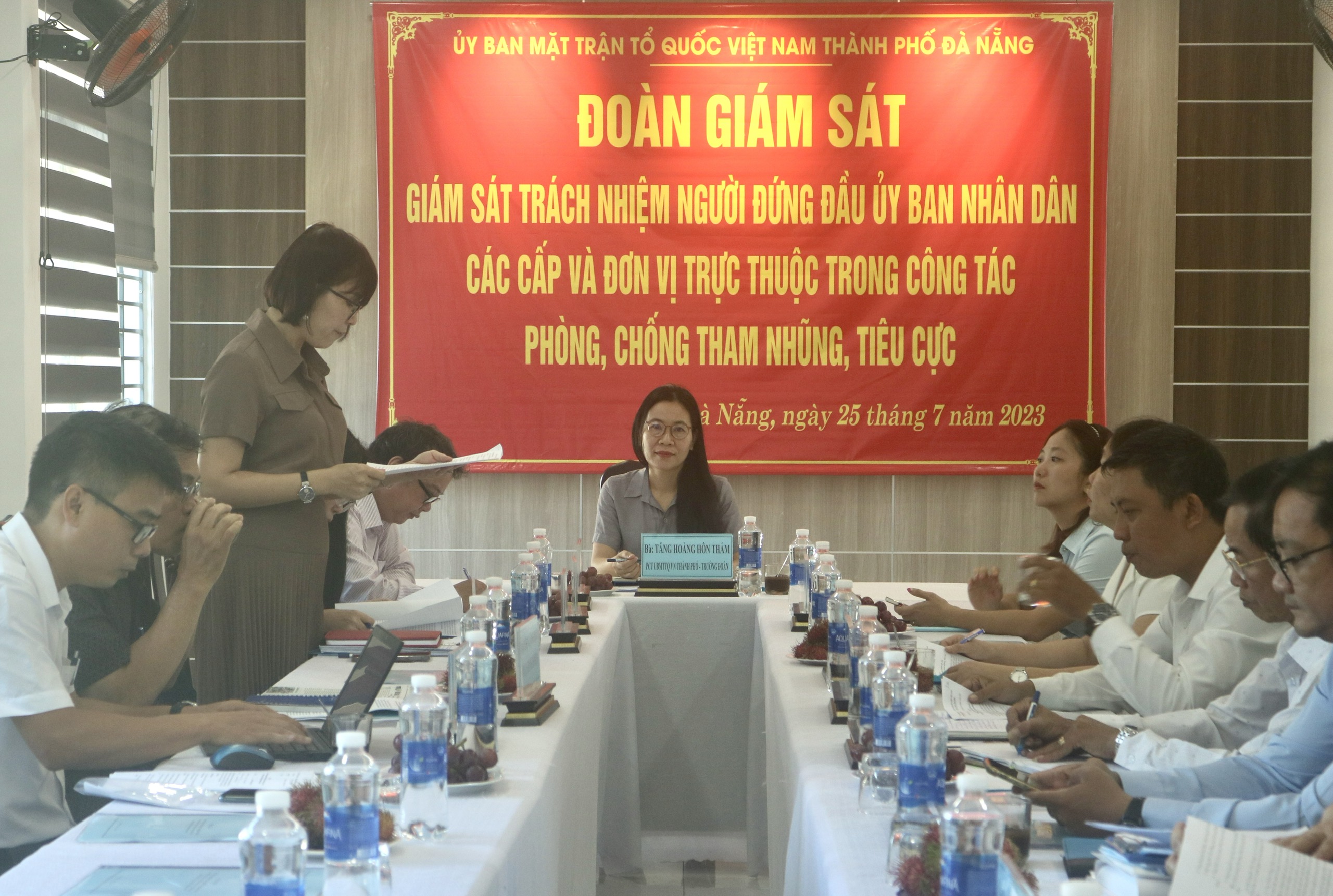 Trong ngày 25/7, Đoàn giám sát chuyên đề do Phó Chủ tịch Ủy ban MTTQ Việt Nam thành phố Tăng Hoàng Hôn Thắm làm Trưởng đoàn cùng các thành viên đại diện các cơ quan Ban Nội chính Thành ủy, Ban Pháp chế HĐND thành phố, Thanh tra thành phố, Sở Tư pháp thành phố, Hội Cựu chiến binh thành phố, Hội Liên hiệp Phụ nữ thành phố và Hội Nông dân thành phố thực hiện giám sát trách nhiệm người đứng đầu UBND các cấp và đơn vị trực thuộc trong công tác phòng, chống tham nhũng, tiêu cực (PCTNTC) tại phường Hòa Hiệp Bắc và Hòa Minh (quận Liên Chiểu).