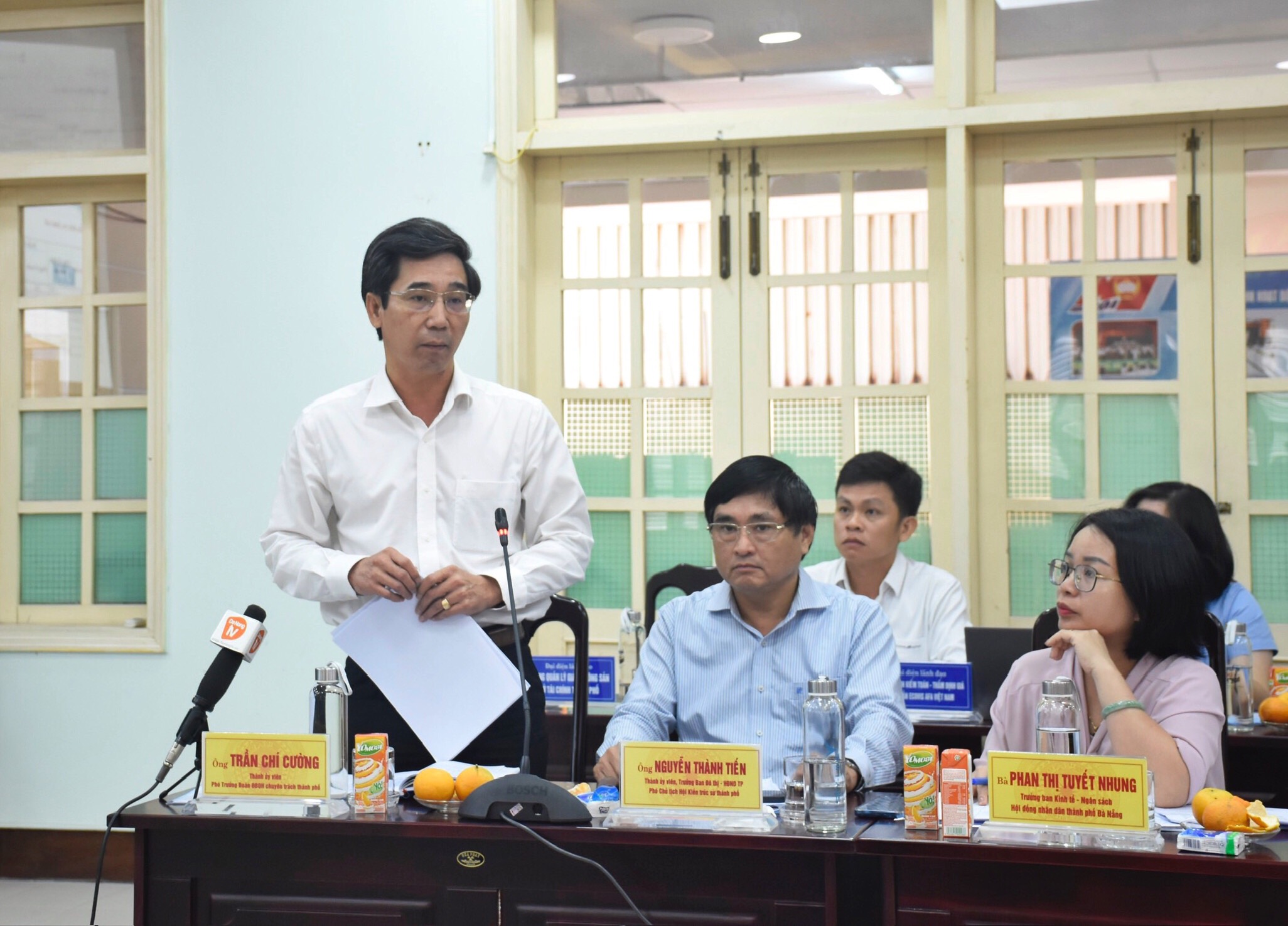 Phó Trưởng đoàn đại biểu Quốc hội thành phố Trần Chí Cường phát biểu tại hội nghị