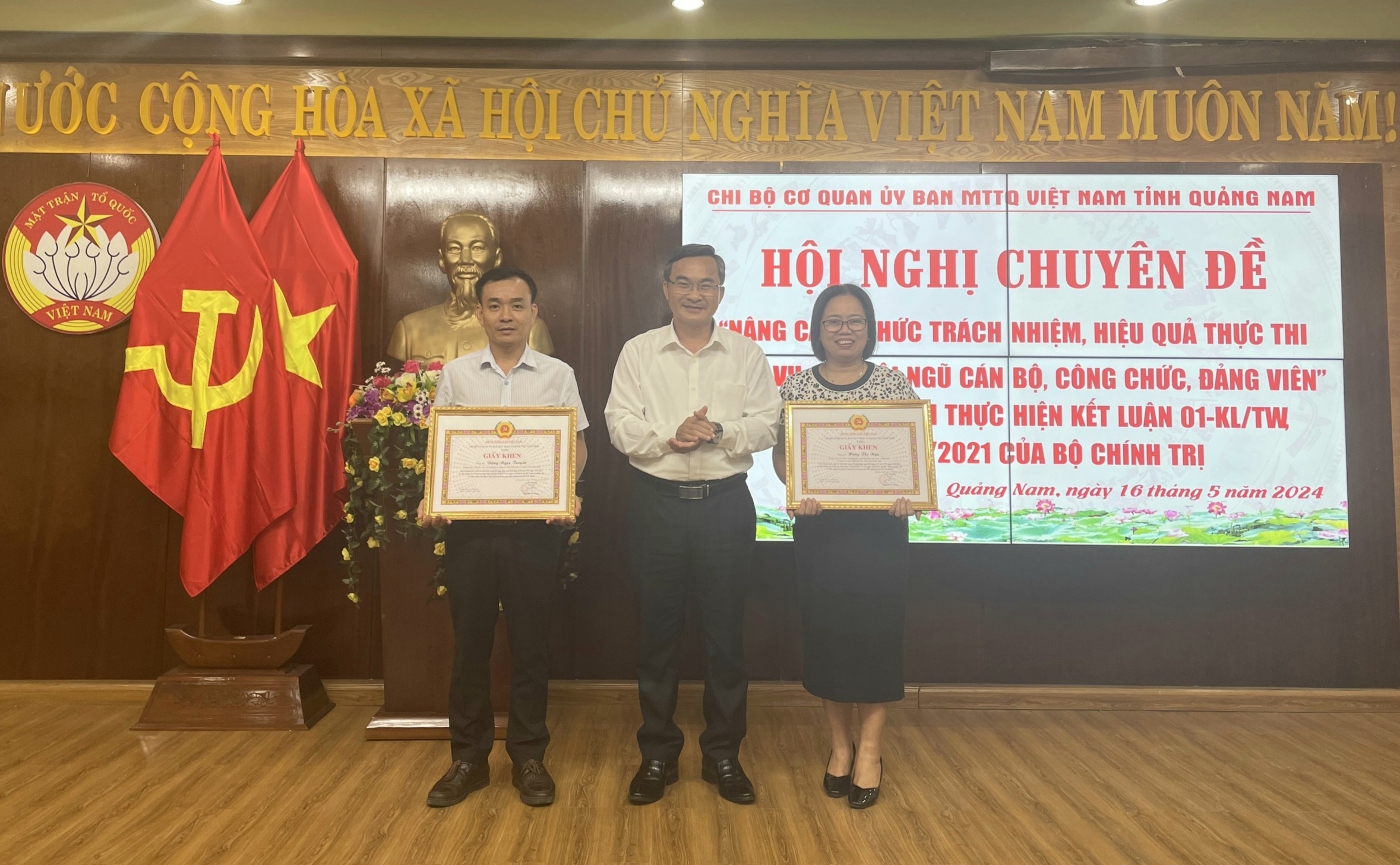 Tại Hội nghị, chi bộ cơ quan Ủy ban MTTQ Việt Nam tỉnh tặng giấy khen cho 02 cá nhân có thành tích tốt trong 03 năm thực hiện Kết luận 01-KL/TW, ngày 18/5/2021 của Bộ Chính trị./.