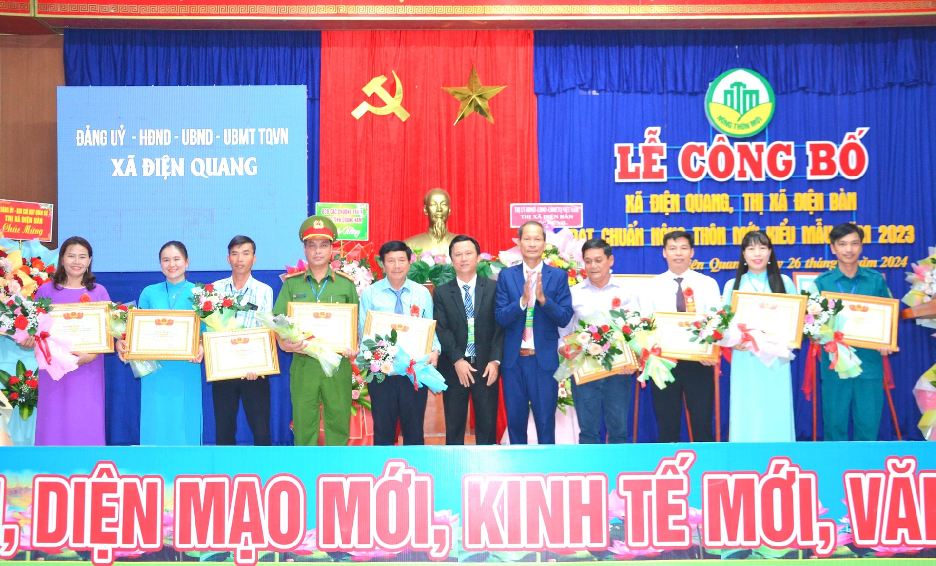 Công nhận 15 xã đạt chuẩn nông thôn mới nâng cao năm 2024, gồm: Quế Xuân 2, Quế Hiệp (Quế Sơn); Bình Đào, Bình Nam, Bình Giang (Thăng Bình); Duy Châu, Duy Phú (Duy Xuyên); Tam Thái (Phú Ninh); Đại Hòa (Đại Lộc); Điện Hồng, Điện Hòa (Điện Bàn); Tam Phú, Tam Thanh, Tam Ngọc, Tam Thăng (Tam Kỳ).