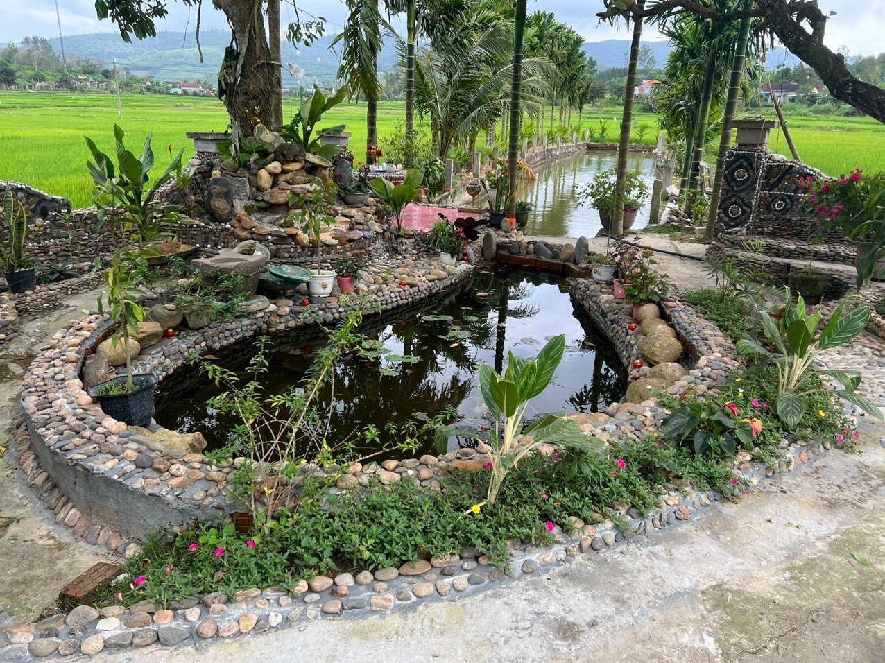Trong ngôi nhà cấp 4 lợp ngói khang trang, được bài trí gọn gàng, anh Võ Đình Đào - một trong những hộ tiêu biểu tại tổ 4 thôn Phước Hà cho biết: từ khi có chủ trương xây dựng khu dân cư nông thôn mới kiểu mẫu, gia đình anh đã chủ động đầu tư kinh phí mua cát, sỏi, xi măng và lên tận các con sông ở Trà My, Phước Sơn, Hiệp Đức thu nhặt những viên đá đẹp để về xây dựng thành tường rào và làm đường quanh khu vực vườn.