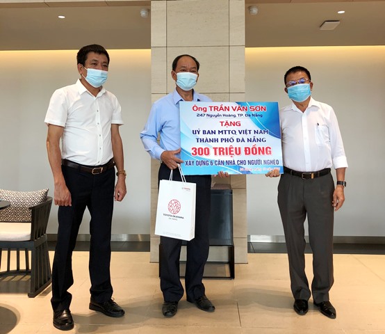 Hưởng ứng kế hoạch phát động Tháng cao điểm “Vì người nghèo” năm 2021 của Ủy ban Mặt trận Tổ quốc Việt Nam thành phố Đà Nẵng và phong trào thi đua “Cả nước chung tay vì người nghèo-Không để ai bị bỏ lại phía sau'', sáng 22/10, ông Trần văn Sơn, trú tại 247 Nguyễn Hoàng, Đà Nẵng, nguyên Giám đốc TOYOTA Đà Nẵng, Cố vấn cao cấp TOYOTA OKAYAMA đã ủng hộ 300.000.000 đ (Ba trăm triệu đồng) để Ủy ban Mặt trận Tổ quốc Việt Nam thành phố xây dựng 06 căn nhà Đại đoàn kết cho người nghèo trên địa bàn thành phố.