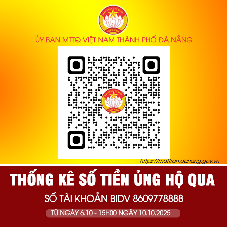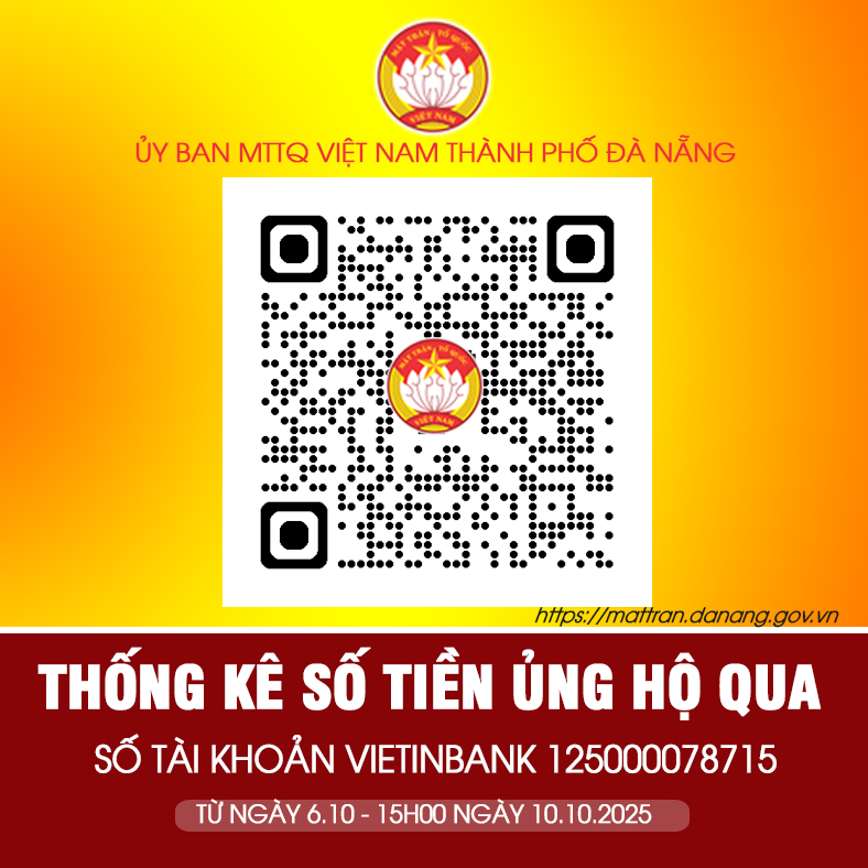 Trân trọng cảm ơn sự chung tay ủng hộ của các cơ quan, tổ chức, các doanh nghiệp, các nhà hảo tâm ở trong và ngoài nước, người nước ngoài đang sinh sống, làm việc ở Việt Nam đã ủng hộ đồng bào khắc phục thiệt hại do cơn bão số 10 gây ra thông qua số tài khoản của Ủy ban MTTQ Việt Nam thành phố Đà Nẵng.