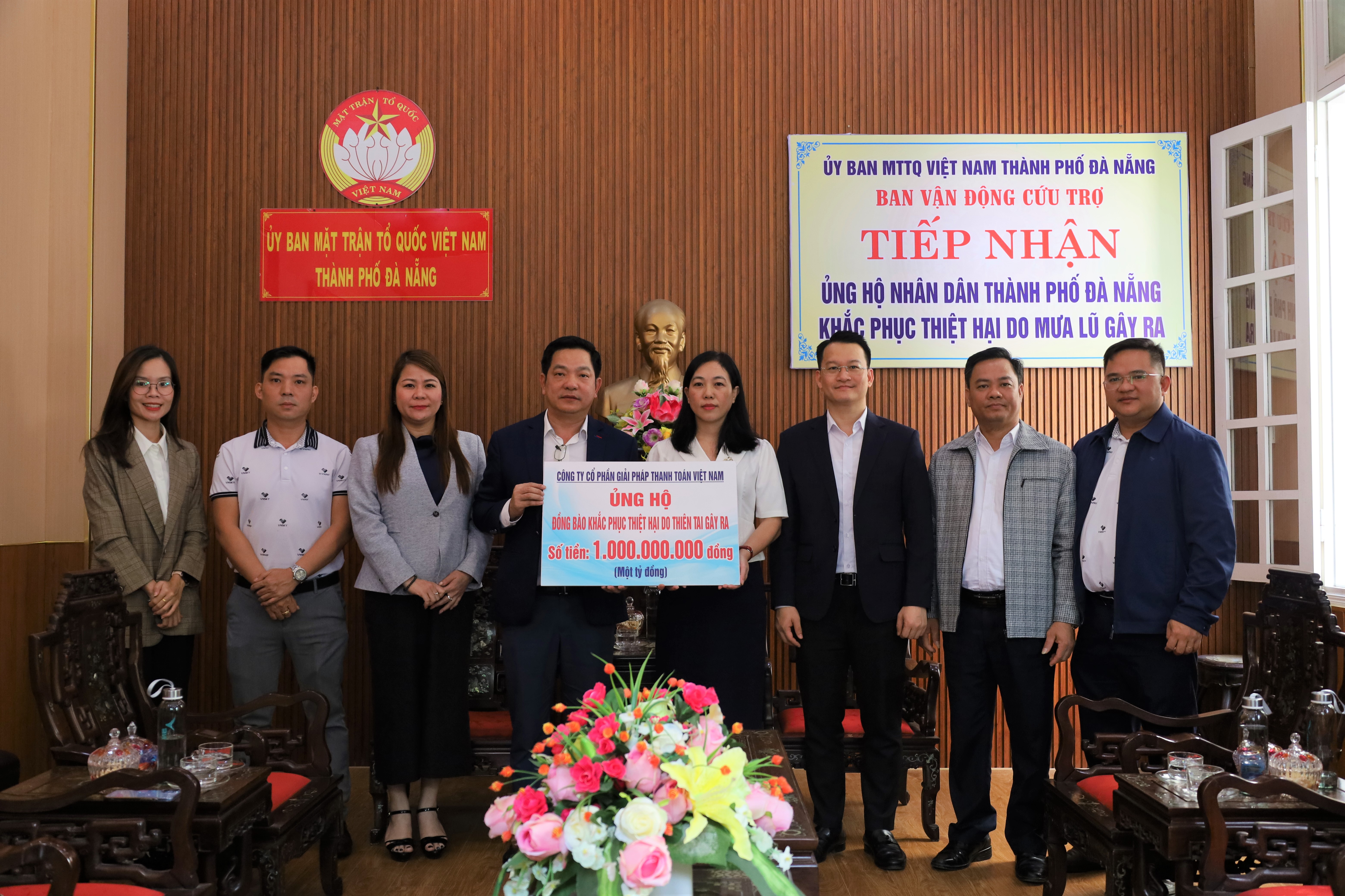 Sáng 27/11, Phó Chủ tịch Ủy ban MTTQ Việt Nam thành phố Đà Nẵng, bà Nguyễn Thị Thanh Phương tiếp đại diện Công ty Cổ phần Giải pháp thanh toán Việt Nam đến trao kinh phí 1 tỷ đồng hỗ trợ người dân bị thiệt hại do mưa lũ.
