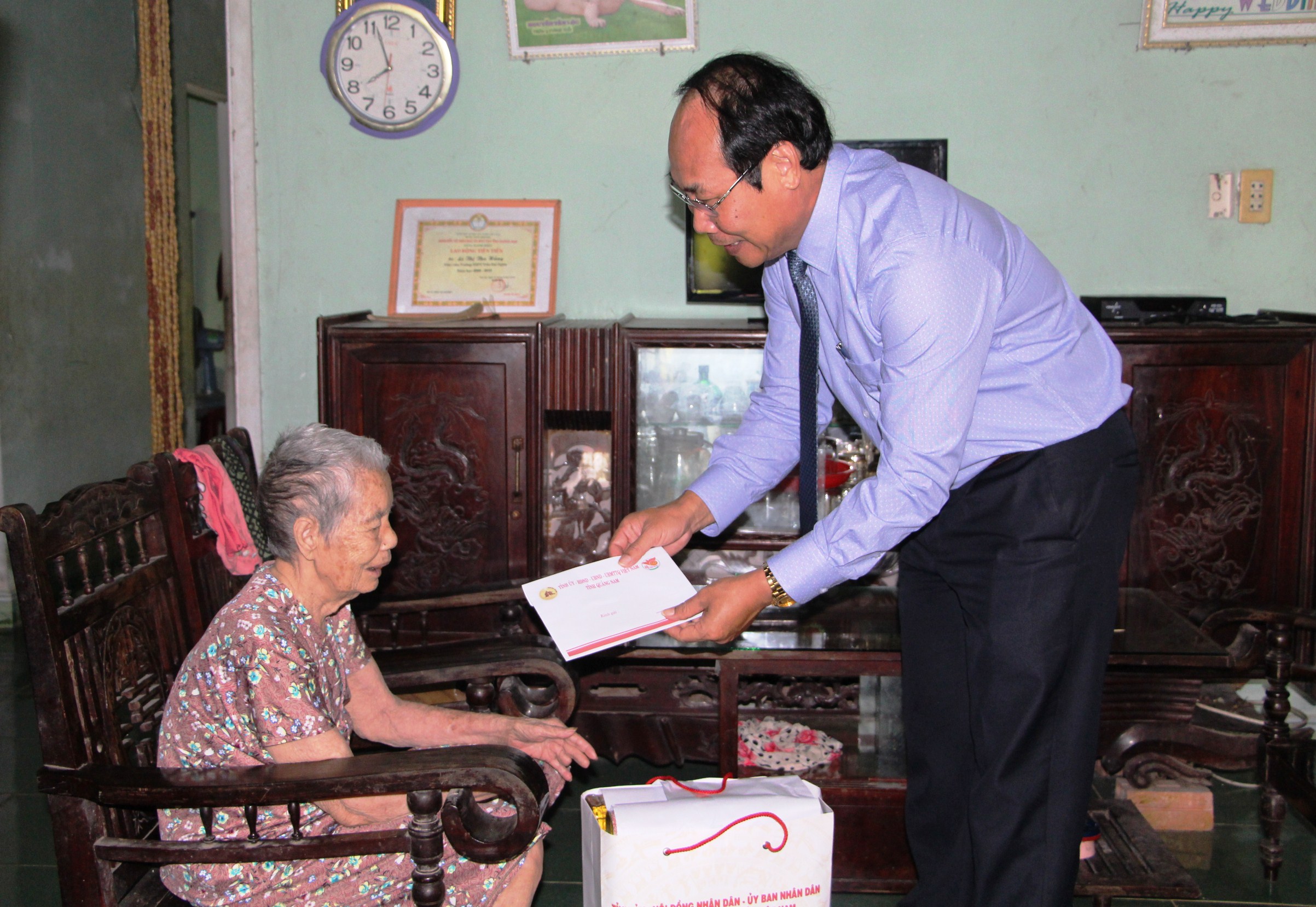 Với truyền thống, đạo lý “Uống nước nhớ nguồn” của dân tộc, Kỷ niệm 70 năm ngày Thương Binh Liệt sỹ (27/7/1947-27/7/2017), sáng ngày 26.7, ông Võ Xuân Ca - UVBTV Tỉnh uỷ, Chủ tịch Ủy ban MTTQ Việt Nam tỉnh đã đến thăm và tặng quà cho các đồng chí cán bộ Lão thành cách mạng, Tiền khởi nghĩa là thương binh hiện đang còn sống trên địa bàn huyện Quế Sơn và Thăng Bình.