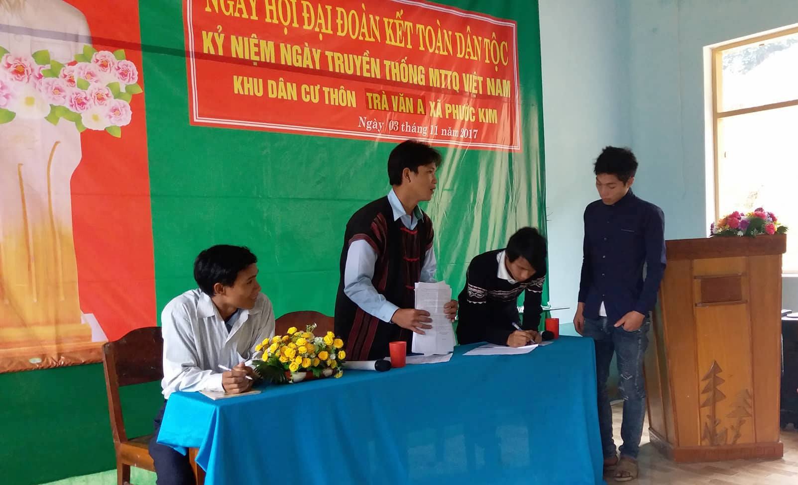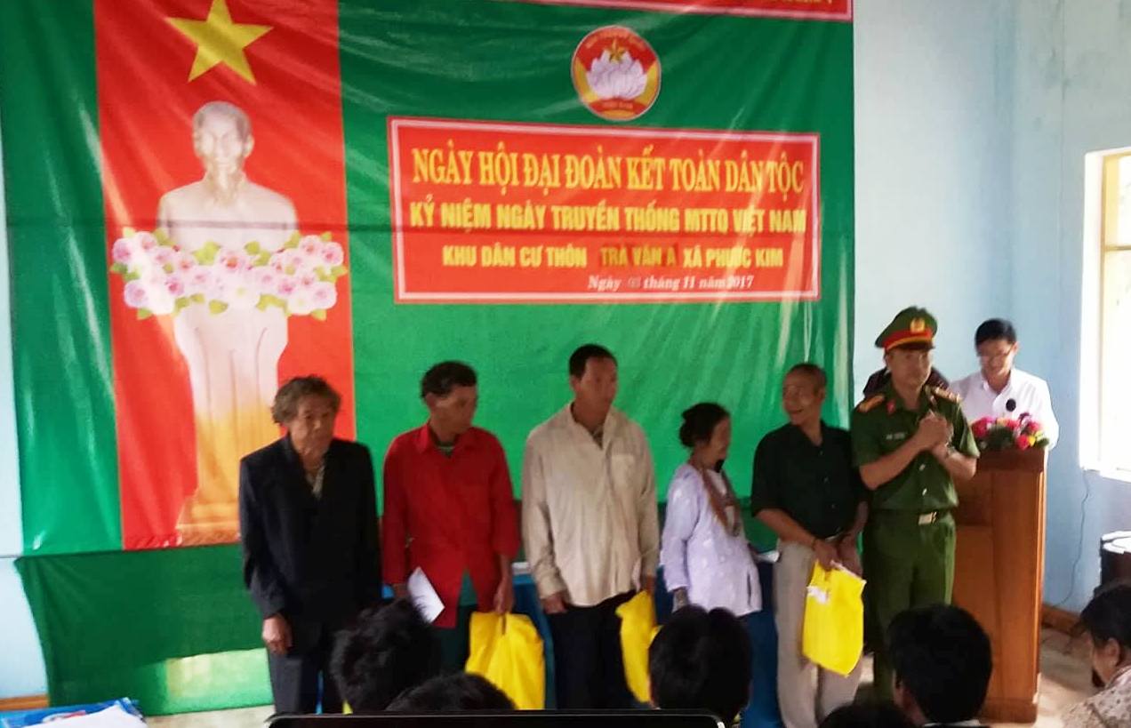 Sáng ngày 03/11/2017, nhân dân thôn Trà Vân A – xã Phước Kim phấn khởi tổ chức Ngày hội đại đoàn kết toàn dân tộc nhân kỷ niệm 87 năm ngày Truyền thống MTTQ Việt Nam (18/11/1930-18/11/2017) và đánh giá kết quả thực hiện cuộc vận động “Toàn dân đoàn kết xây dựng nông thôn mới, đô thị văn minh” trong năm 2017. Về dự Ngày hội với bà con có ông Lê Thái Bình - Phó Chủ tịch Ủy ban MTTQ Việt Nam tỉnh và ông Nguyễn Hà Lai - Phó Giám đốc Công an tỉnh Quảng Nam.