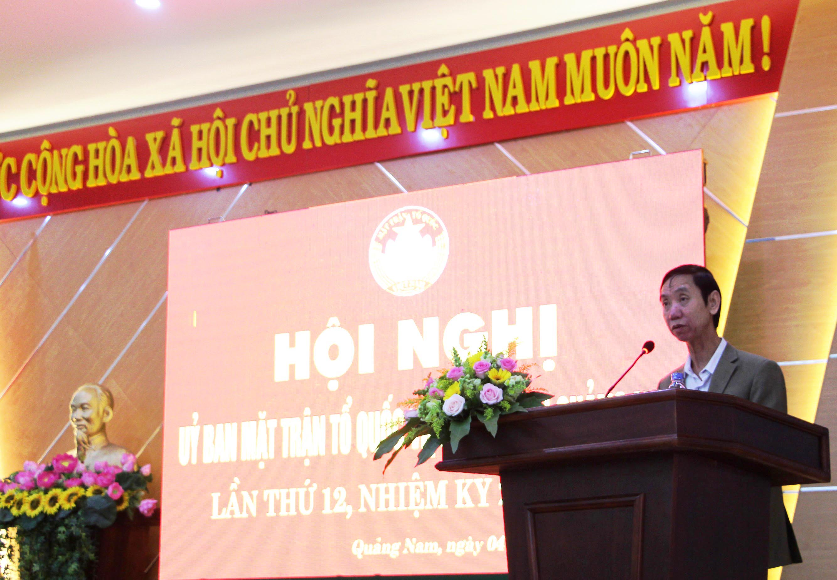 Phát biểu tại Hội nghị, đồng chí Nguyễn Ngọc Quang- Chủ tịch HĐND, nguyên Bí thư Tỉnh ủy ghi nhận vai trò của Mặt trận trong tình hình mới, đã tập hợp, phát huy nội lực trong các tầng lớp nhân dân cùng với các cấp ủy Đảng, chính quyền xây dựng Quảng Nam ngày càng phát triển. Năm 2018, tổng thu ngân sách nhà nước trên địa bàn tỉnh đạt hơn 21 nghìn tỷ đồng đã thể hiện sự phát triển kinh tế vượt bậc của Quảng Nam. Đây là kết quả rất đáng tự hào và có được những kết quả đó mỗi thế hệ đi sau phải luôn ghi nhớ những đóng góp to lớn của các thế hệ lãnh đạo đi trước và tiếp tục phấn đấu, nêu gương lãnh đạo, tiếp tục cải cách hành chính, kỹ cương, sáng tạo thay đổi trong tư duy và cách nghĩ, bức phá mạnh mẽ phấn đấu đưa Quảng Nam trở thành tỉnh công nghiệp vào năm 2020.