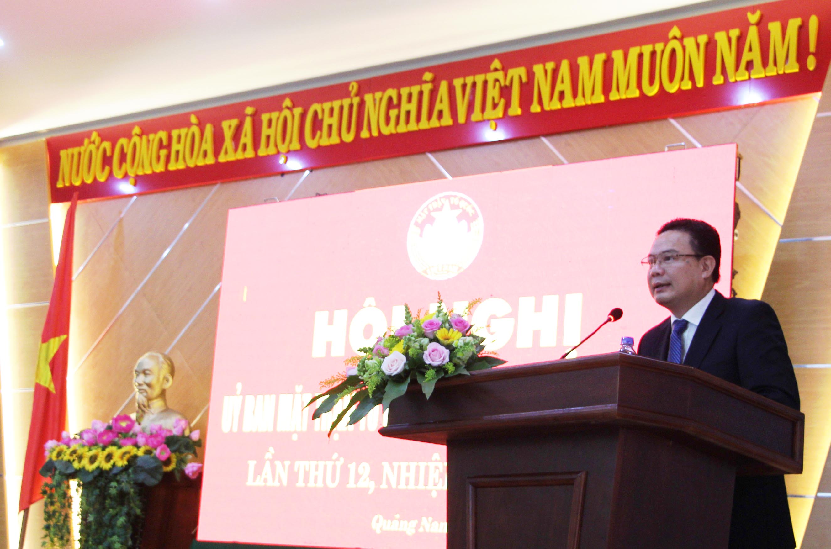 Kết luận Hội nghị, đồng chí Võ Xuân Ca- UVBTV, Chủ tịch Ủy ban MTTQ Việt Nam tỉnh nêu lên những nhiệm vụ trọng tâm năm 2019, đặc biệt tập trung cho công tác tổ chức Đại hội MTTQ Việt Nam cấp huyện, cấp tỉnh, xây dựng đội ngũ cán bộ Mặt trận nhiệm kỳ 2019-2024 đảm bảo tính tiêu biểu, tâm huyết với công việc, bản lĩnh, sáng tạo để đáp ứng yêu cầu nhiệm vụ chính trị trong giai đoạn mới; tăng cường công tác nắm bắt dư luận xã hội; phát huy dân chủ nhân dân, xây dựng Đảng, xây dựng chính quyền trong sạch vững mạnh bằng những hoạt động giám sát, phản biện những vấn đề thiết thực mà xã hội, nhân dân quan tâm; phối hợp tổ chức các phong trào, các cuộc vận động xây dựng nông thôn mới, giảm nghèo bền vững. Để thực hiện tốt công tác Mặt trận năm 2019, đòi hỏi mỗi cán bộ Mặt trận phải nêu cao tinh thần trách nhiệm, quyết tâm đổi mới, năng động trong công tác; chủ động, tăng cường phối hợp với các tổ chức thành viên, các ngành liên quan bằng những Chương trình phối hợp hoạt động cụ thể, trách nhiệm cùng nhau hướng đến mục tiêu chung vì sự phát triển tỉnh Quảng Nam giàu đẹp, vì cuộc sống ấm no, hạnh phúc cho nhân dân.