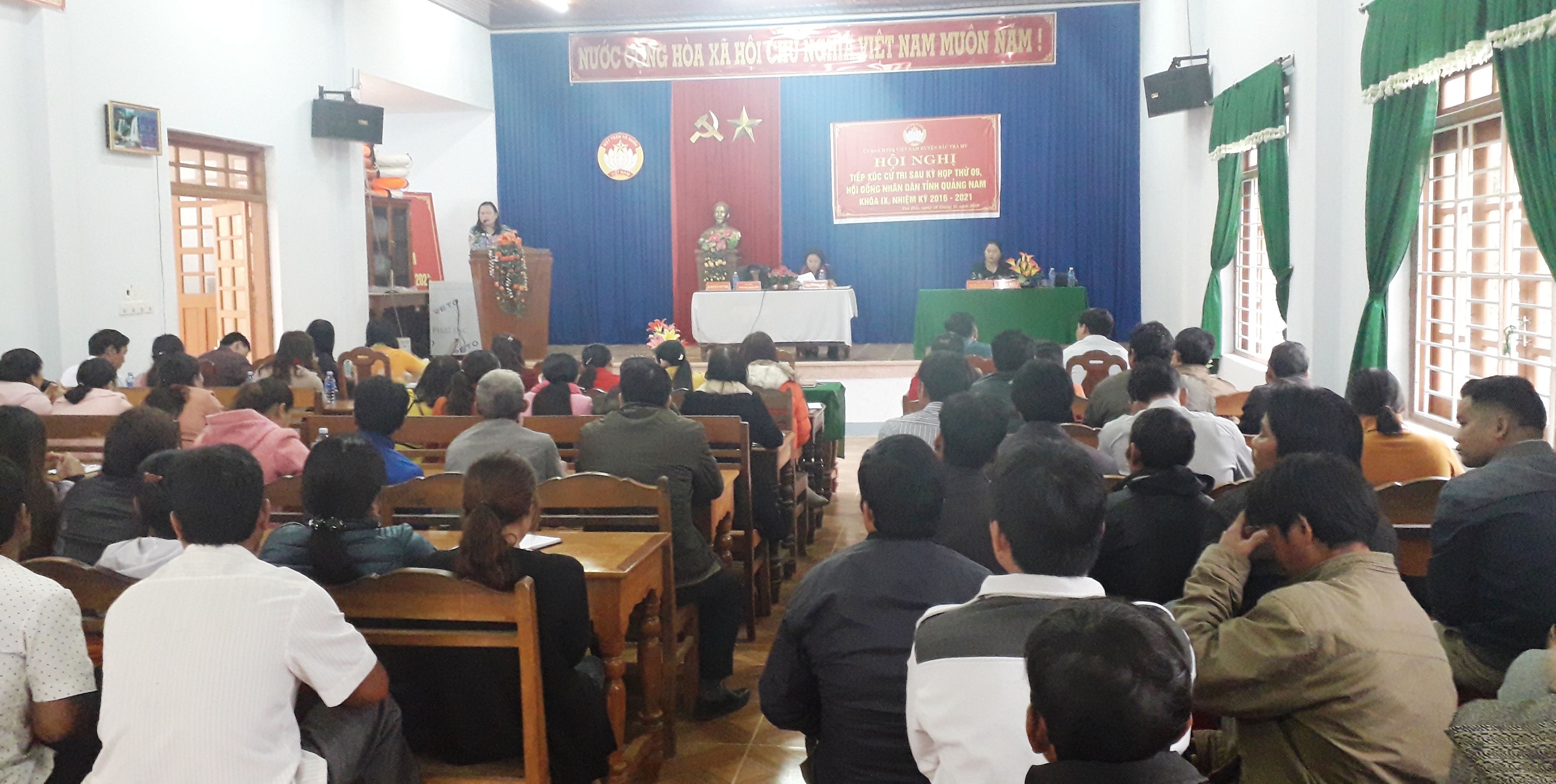 Tại Hội nghị, đại biểu HĐND tỉnh thông tin với cử tri về kết quả tình hình phát triển kinh tế- xã hội tỉnh Quảng Nam 2018 và các Nghị quyết tại kỳ họp thứ 9 HĐND tỉnh đã thông qua, trong đó tập trung nói rõ về những Nghị quyết có liên quan trực tiếp đến đời sống nhân dân, cụ thể: Nghị quyết về thành lập, đổi tên thôn, tổ dân phố thuộc các xã, phường, thị trấn trên địa bàn tỉnh Quảng Nam; Nghị quyết quy định số lượng, chức danh và mức phụ cấp hằng tháng đối với người hoạt động không chuyên trách ở thôn, tổ dân phố trên địa bàn tỉnh Quảng Nam; Nghị quyết về bãi bỏ tiết 3, điểm 2 khoản 4 Điều 1 Nghị quyết số 30/2011/NQ/HĐND ngày 09/12/2011 của HĐND tỉnh và quy định mức hỗ trợ một lần đối với những người hoạt động không chuyên trách khác ở thôn, tổ dân phố trên địa bàn tỉnh Quảng Nam; Nghị quyết quy định mức hỗ trợ người hoạt động không chuyên trách thôn, tổ dân phố thôi đảm nhận chức danh sau khi sắp xếp, tổ chức lại thôn, tổ dân phố trên địa bàn tỉnh Quảng Nam; Nghị quyết về cơ chế, chính sách khuyến khích doanh nghiệp đầu tư vào nông nghiệp, nông thôn tỉnh Quảng Nam; Nghị quyết về chính sách hỗ trợ nâng cao mức sống cho một số đối tượng thuộc hộ nghèo đang hưởng chính sách người có công và bảo trợ xã hội trên địa bàn tỉnh Quảng Nam và Nghị quyết về chính sách hỗ trợ người lao động tỉnh Quảng Nam đi làm việc ở nước ngoài theo hợp đồng giai đoạn 2019-2021.