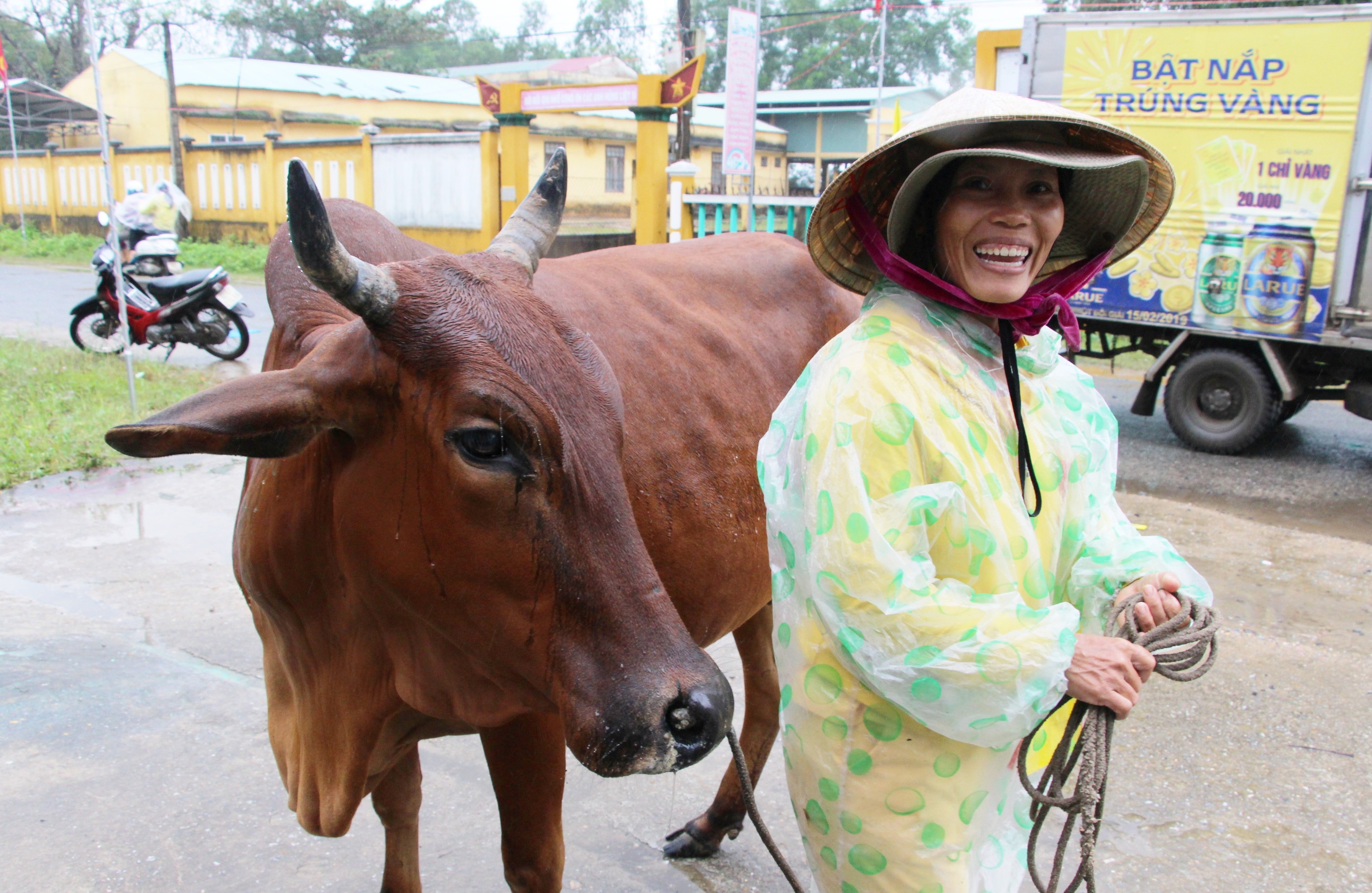Bà Phạm Thị Ngọc Ánh phấn khởi tại lễ bàn giao bò