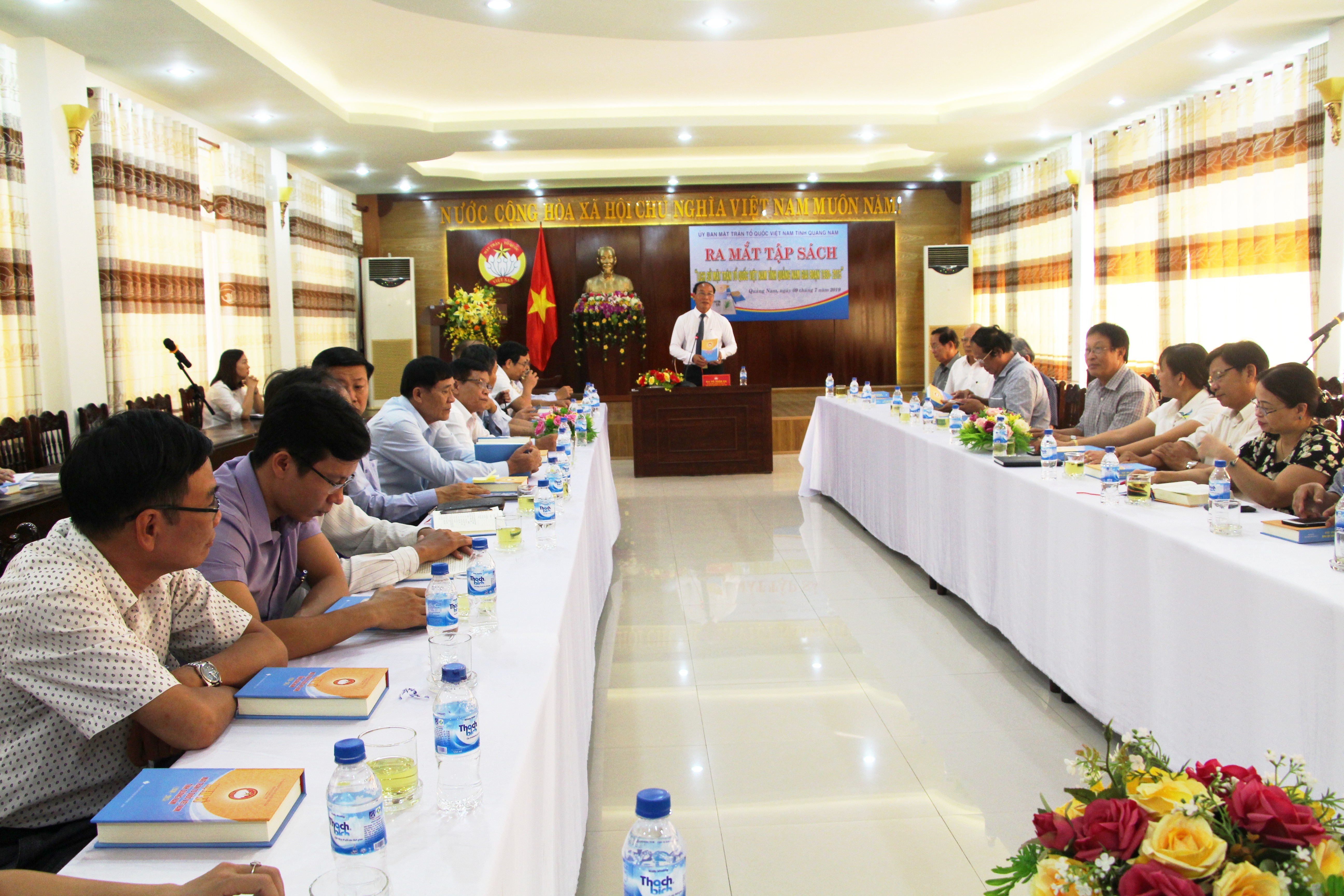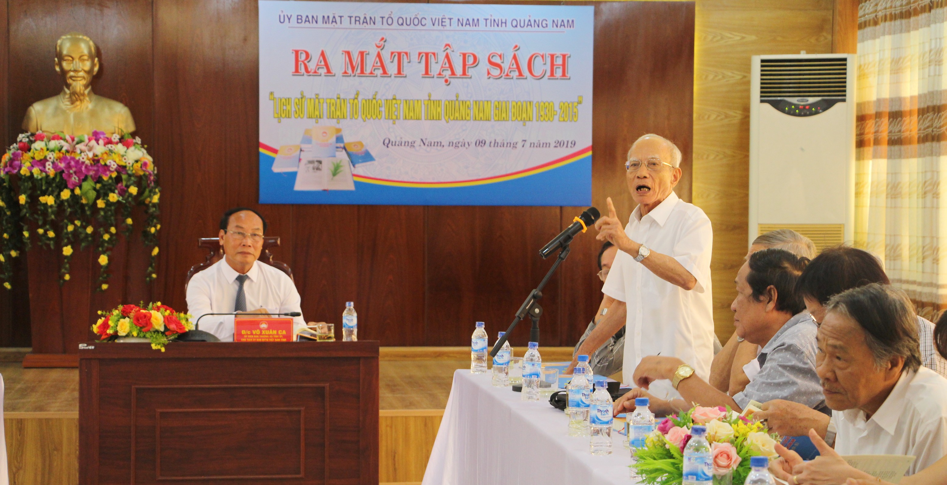 Tại Lễ ra mắt Tập sách, ông Võ Xuân Ca- UVBTV, Chủ tịch Ủy ban MTTQ Việt Nam tỉnh chân thành cảm ơn sự quan tâm, giúp đỡ tận tình của các tổ chức, cá nhân, nhất là các vị nguyên lãnh đạo Uỷ ban Mặt trận Tổ quốc Việt Nam tỉnh qua các thời kỳ, các nhà nghiên cứu văn hóa, lịch sử, Ban Tuyên giáo Tỉnh ủy Quảng Nam đã hỗ trợ về chuyên môn, nghiệp vụ, tổ chức nghiệm thu tập sách; cảm ơn Nhà Xuất bản Đà Nẵng, Công ty Cổ phần In – Phát hành sách Quảng Nam đã có nhiều cố gắng giúp Ban Thường trực Ủy ban Mặt trận Tổ quốc Việt Nam tỉnh hoàn thành việc xuất bản Tập sách, đúng vào dịp Đại hội đại biểu Mặt trận Tổ quốc Việt Nam tỉnh Quảng Nam lần thứ X, nhiệm kỳ 2019 - 2024, sẽ diễn ra trong hai ngày 16-17/7/2019.