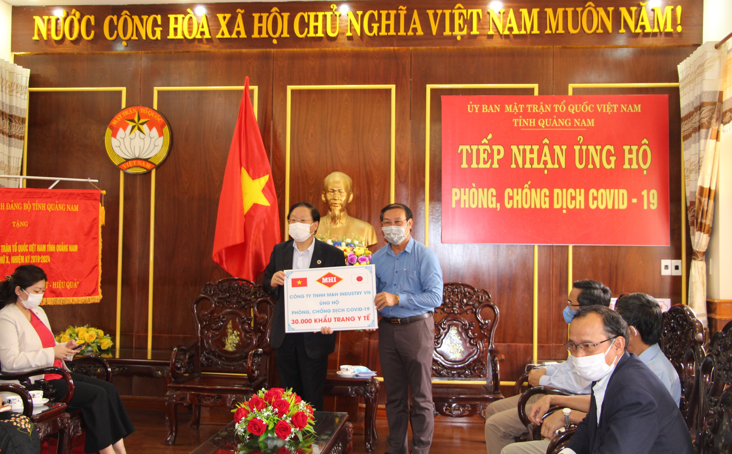 Đại diện cho các công ty, đơn vị đến trao tiền ủng hộ công tác phòng, chống dịch Covid-19, ông Yamakawa Shichihel- Giám đốc Công ty TNHH M&H INDUSTRY Việt Nam bày tỏ: Dịch Covid-19 lây lan nguy hiểm và ảnh hưởng nặng nề đến tất cả các nước trên thế giới. Nhật Bản- quê hương ông cũng đang chịu ảnh hưởng bởi dịch, các doanh nghiệp ở Nhật Bản đang gặp rất nhiều khó khăn trong sản xuất, kinh doanh. Nhưng đang sống và làm việc tại Việt Nam, ông rất ngưỡng mộ về chủ trương của Chính phủ Việt Nam trong công tác phòng, chống và kiểm soát dịch bệnh. Từ đó, khiến ông có niềm tin và yên tâm ở lại Việt Nam để điều hành sản xuất, kinh doanh. Với tình cảm của mình, ông trao tặng cho Quảng Nam 30 ngàn khẩu trang với chất lượng Nhật Bản để đảm bảo cho công tác phòng, chống dịch Covid-19.