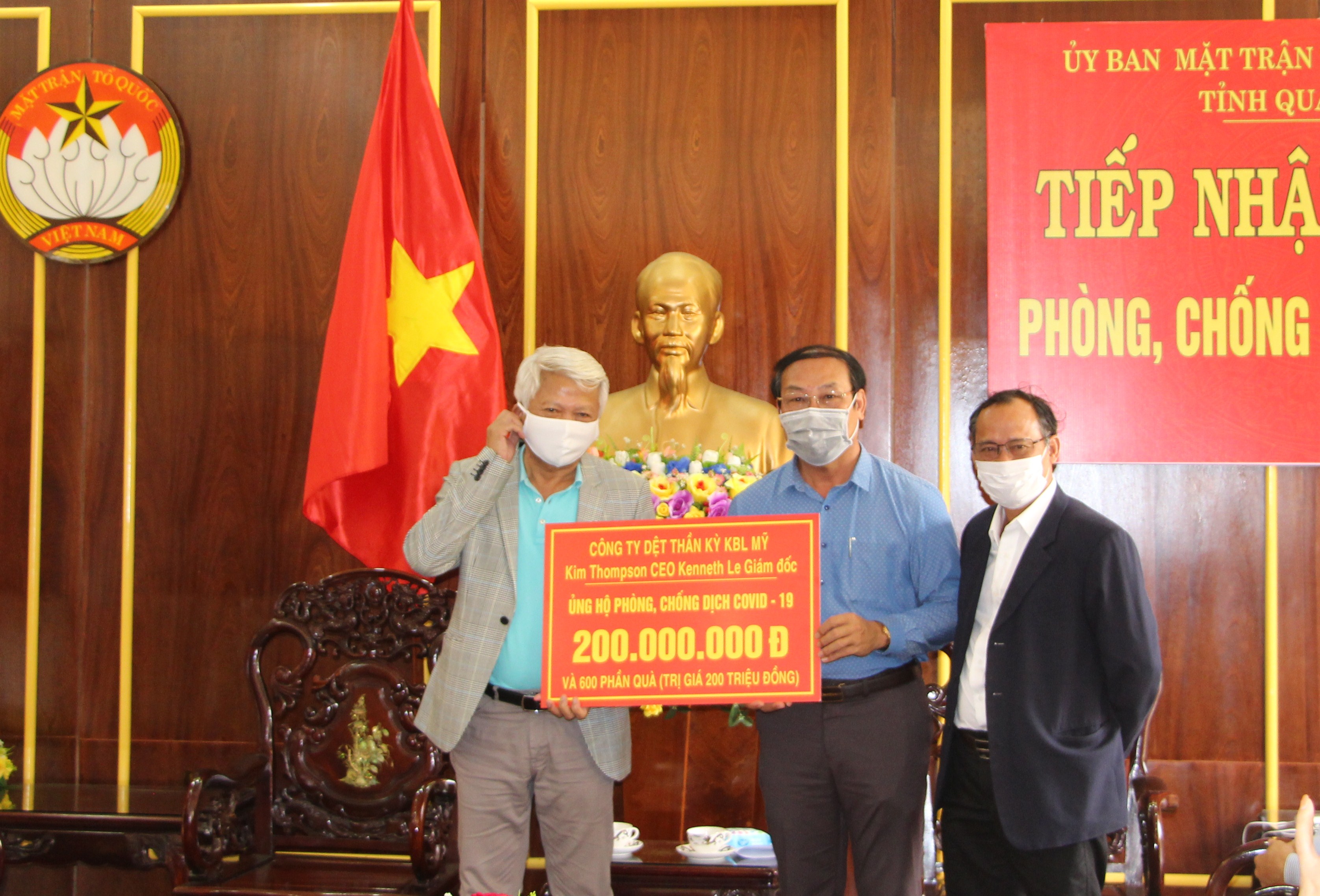 Đón nhận những tình cảm của các doanh nghiệp dành cho Quảng Nam, ông Võ Xuân Ca- Chủ tịch Ủy ban MTTQ Việt Nam tỉnh rất cảm động. Ông khẳng định: Trong cuộc chiến chống giặc dịch, ngoài chiến lược đúng đắn của Chính phủ thì điều quan trọng vẫn phải nói đến sức mạnh cộng đồng trên khắp cả nước. Nhờ sự đoàn kết của cả hệ thống chính trị, sự chung tay góp sức của các doanh nghiệp, các tầng lớp nhân dân mới có kết quả như ngày hôm nay.