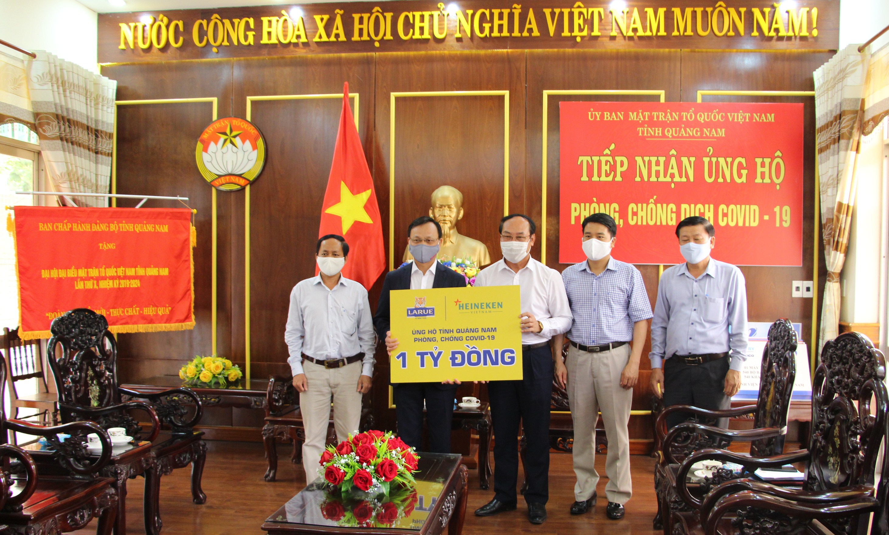 Sáng ngày 31/7/2020, ông Nguyên Thanh Phúc- Tổng giám đốc Công ty TNHH Nhà máy bia Heineken Việt Nam trao số tiền 1 tỷ đồng ủng hộ Quỹ phòng chống dịch Covid-19 của tỉnh Quảng Nam. Ông Võ Xuân Ca- UVBTV, Chủ tịch Ủy ban MTTQ Việt Nam tỉnh và ông Trần Văn Tân- Phó Chủ tịch UBND tỉnh tiếp nhận.