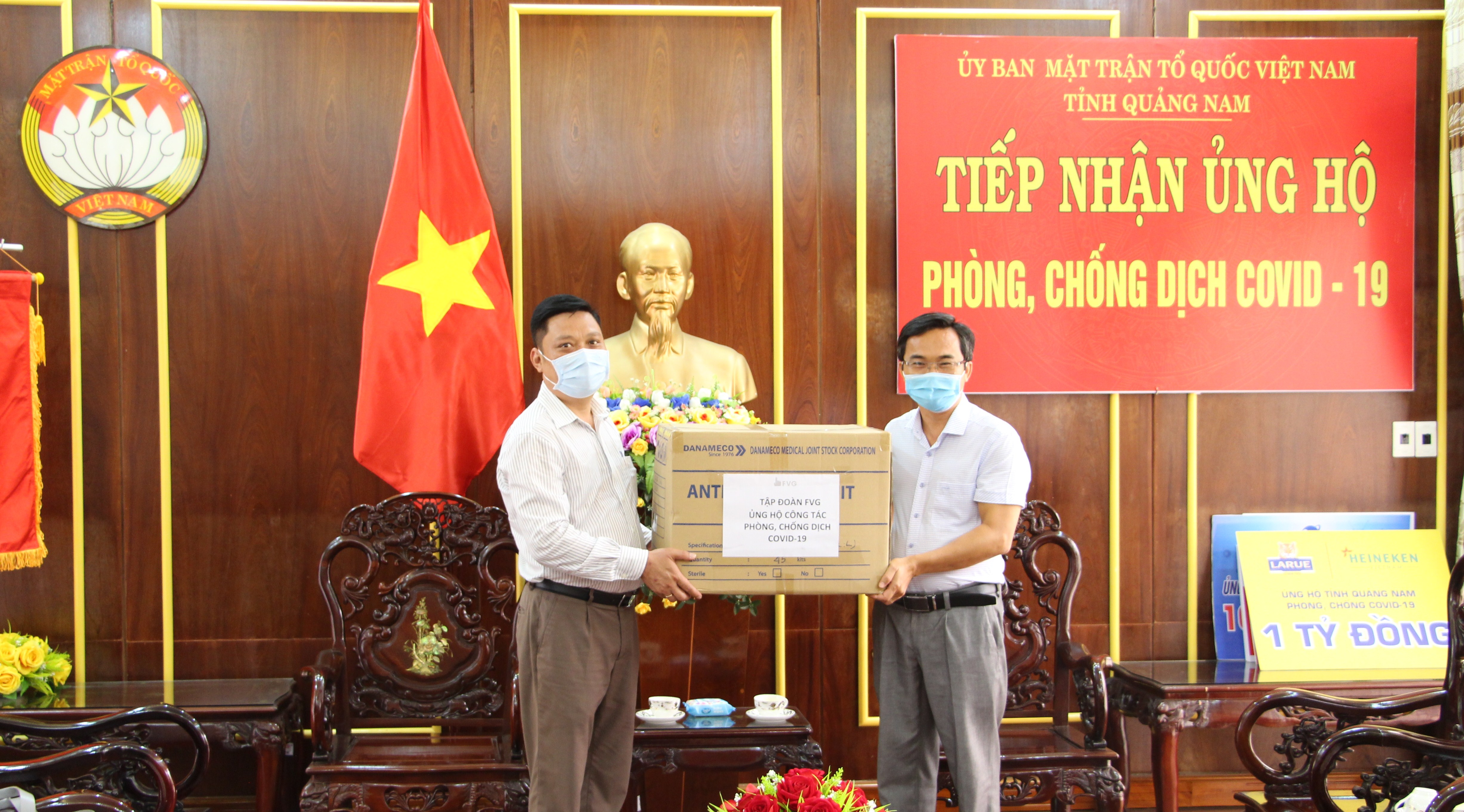 Chiều ngày 03/8/2020, ông Nguyễn Phi Hùng- Phó Chủ tịch Ủy ban MTTQ Việt Nam tỉnh tiếp nhận 6 thùng khẩu trang và 10 thùng trang phục phòng, chống dịch (tổng trị giá 100 triệu đồng) của Tập đoàn FVG do ông Vũ Cao Giang- Giám đốc Công ty Chu Lại- Hội An thành viên của Tập đoàn FVG trao tặng. Ông Nguyễn Phi Hùng ghi nhận và cảm kích tình cảm của công ty dành cho Quảng Nam và hứa sẽ chuyển ngay nguồn hàng ủng hộ đến các cơ sở y tế, các khu cách ly tập trung kịp thời cho công tác phòng, chống dịch.